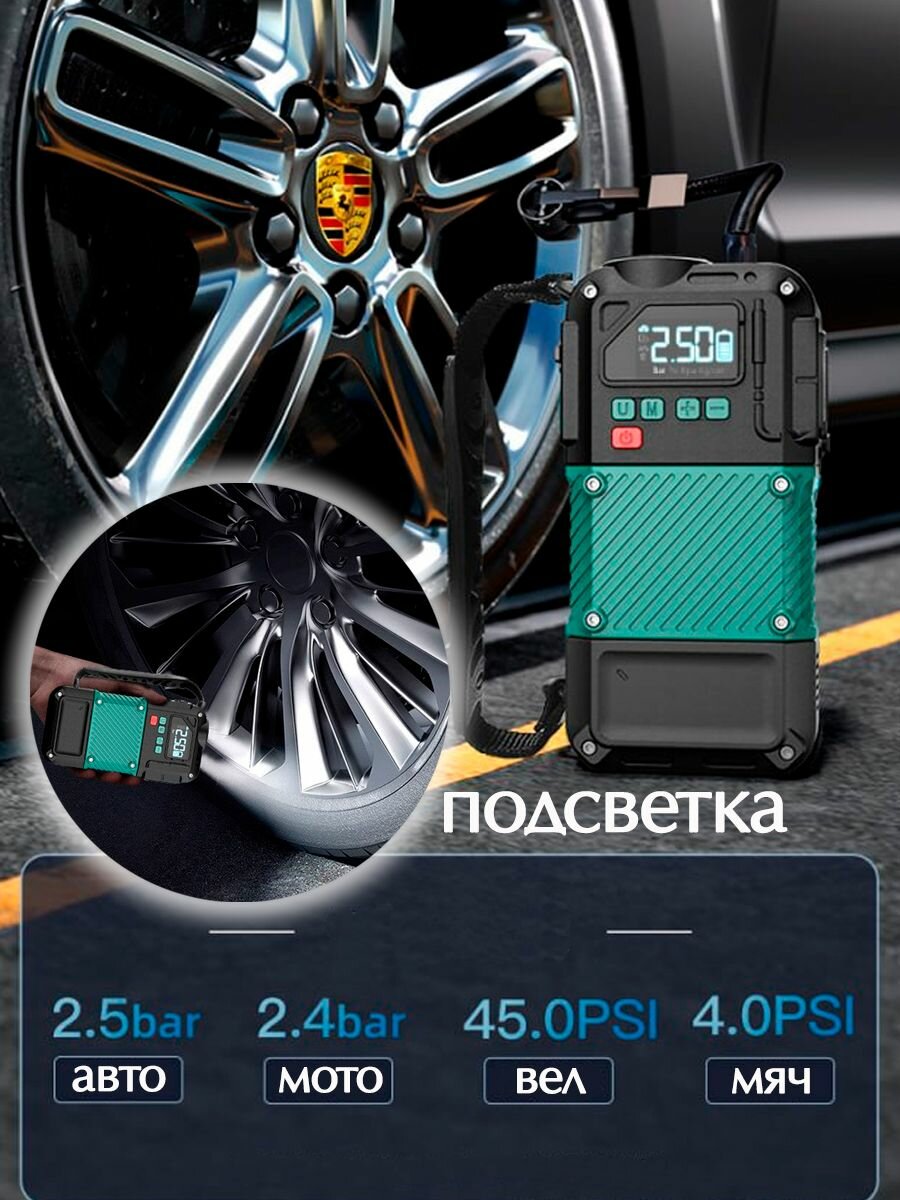 Компрессор автомобильный портативный аккумуляторный / Насос для велосипедов, мячей, лодок, матрасов