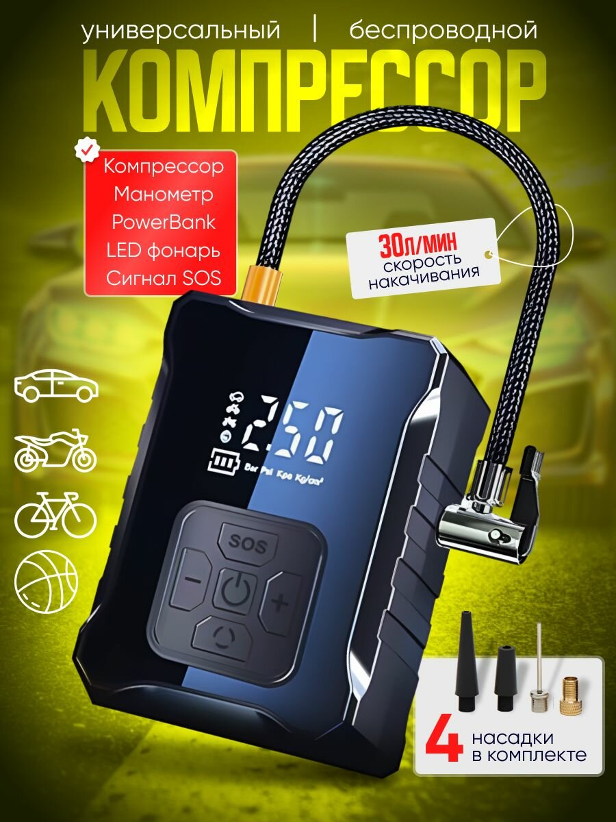 Купить Компрессор автомобильный / мощный автоматический насос со встроенным аккумулятором / беспроводной компрессор / powerbank