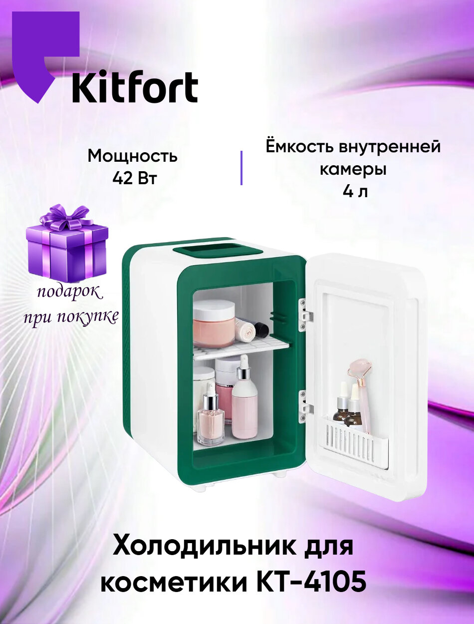 Купить Холодильник Kitfort КТ-4105, для косметики, зеленый, белый, пластик, 4л