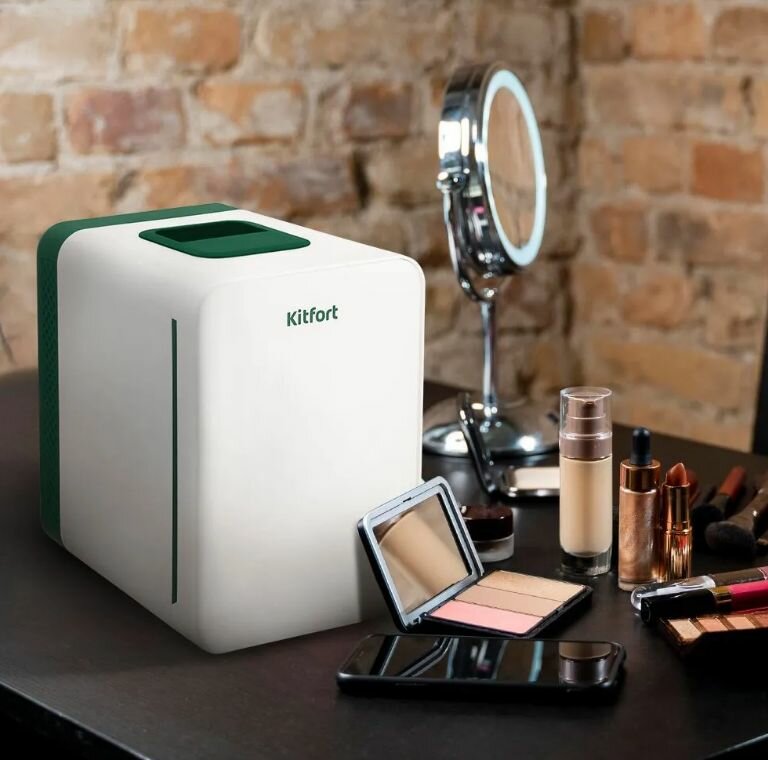 Холодильник Kitfort КТ-4105, для косметики, зеленый, белый, пластик, 4л интересное: