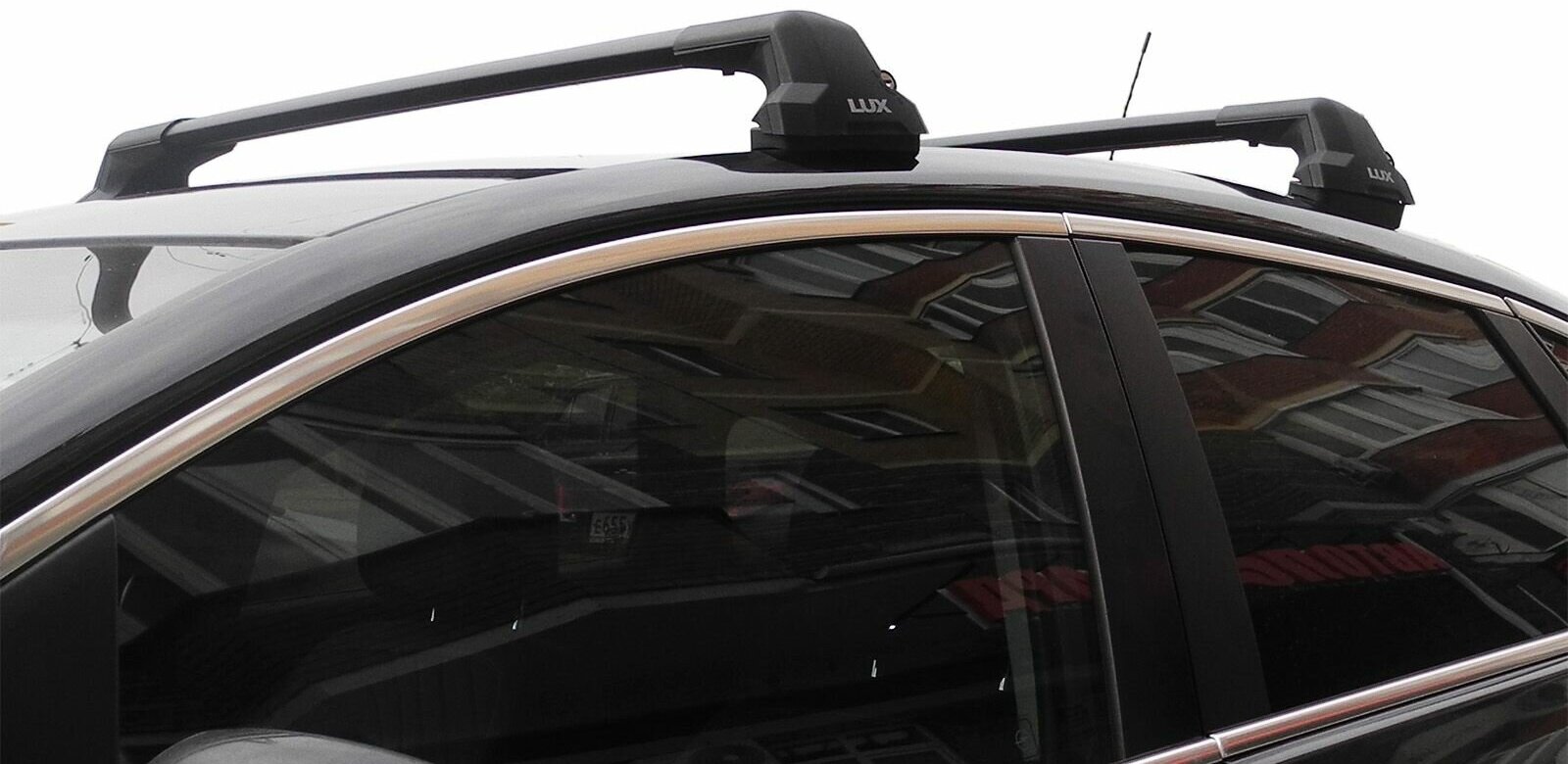 Багажник на крышу Мазда 3, седан, 2003-2013 (Mazda3 BK / BL, sedan, 2003-2013), Lux City, черные дуги интересное: