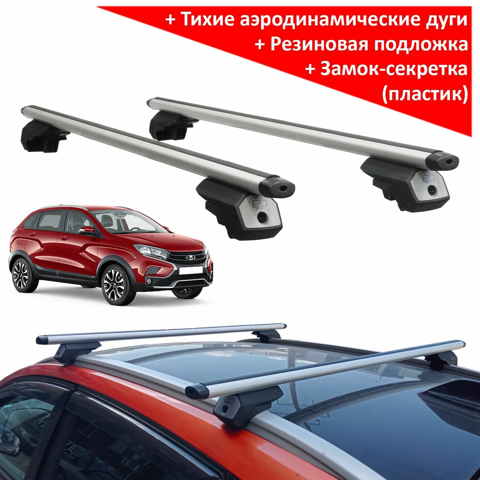 Багажник на интегрированные рейлинги Lada XRay Cross, ЕД Арго, аэродинамические дуги интересное:
