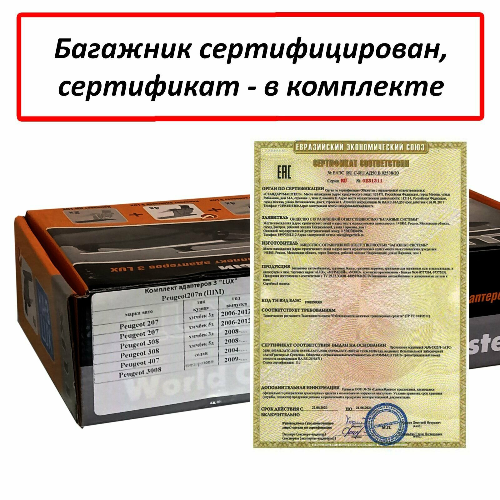 Багажник на крышу Пежо 308, хэтчбек (Peugeot 308, 2008-2021), Lux City, с замком, серебристые крыловидные дуги интересное: