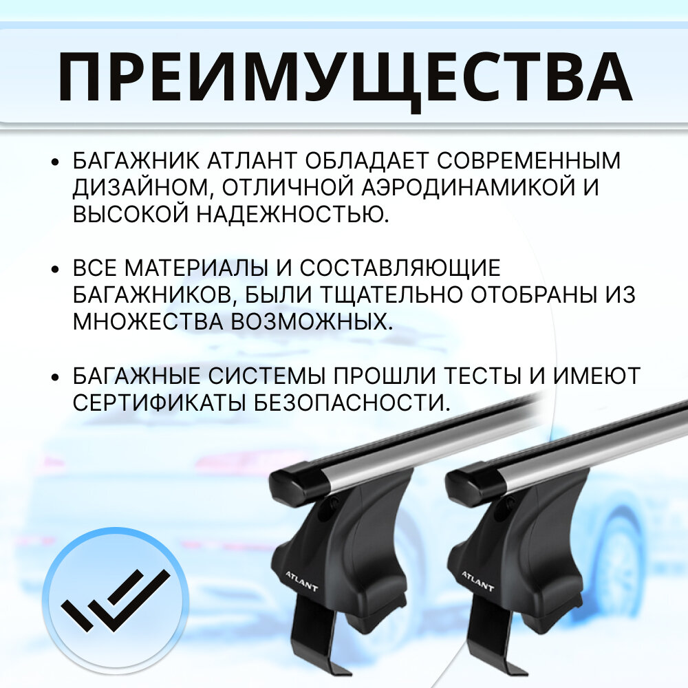 Багажник ATLANT на гладкую крышу KIA Cerato (LD) 2003-2009, хэтчбек, дуги алюминиевые Аэро 50 кг. Эконом 126 см интересное: