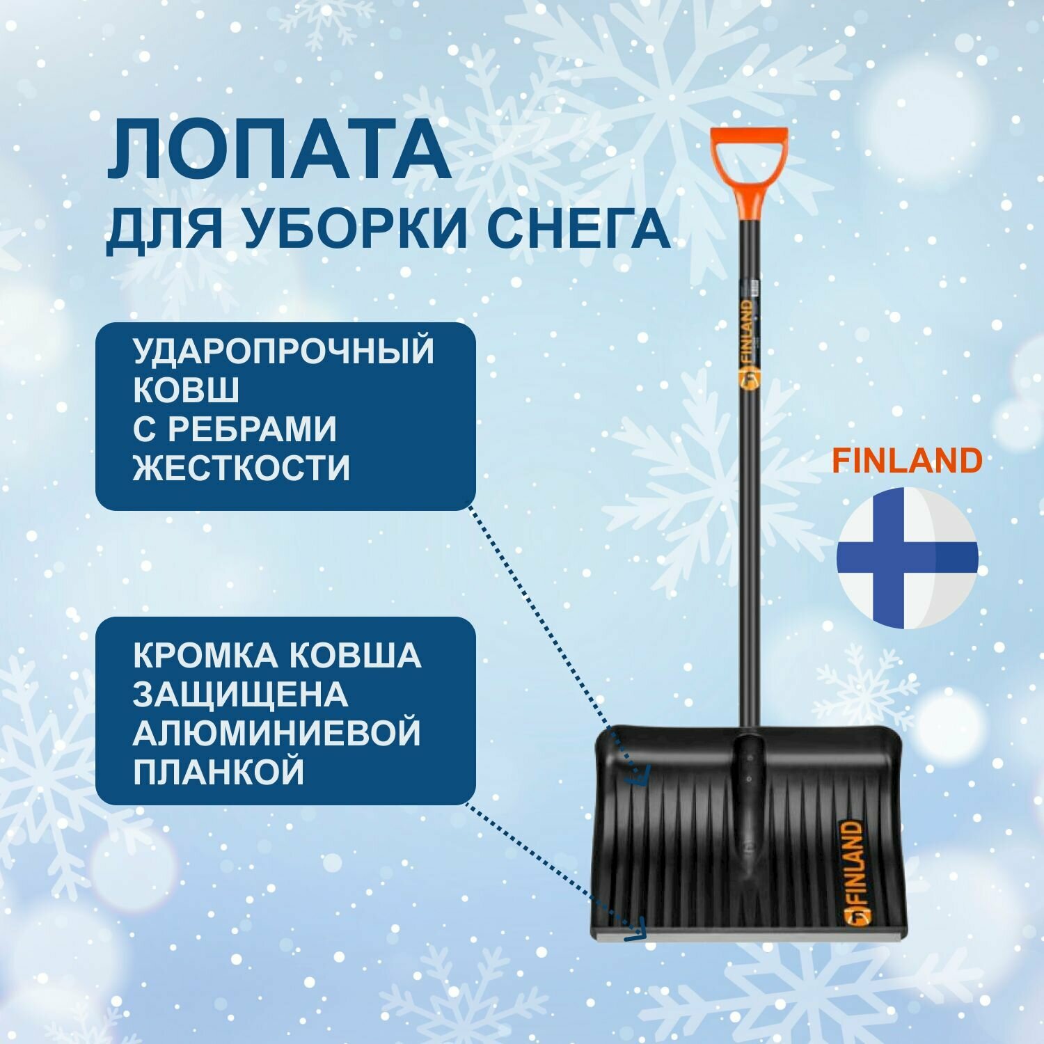 Лопата снеговая FINLAND 1243-Ч с черенком