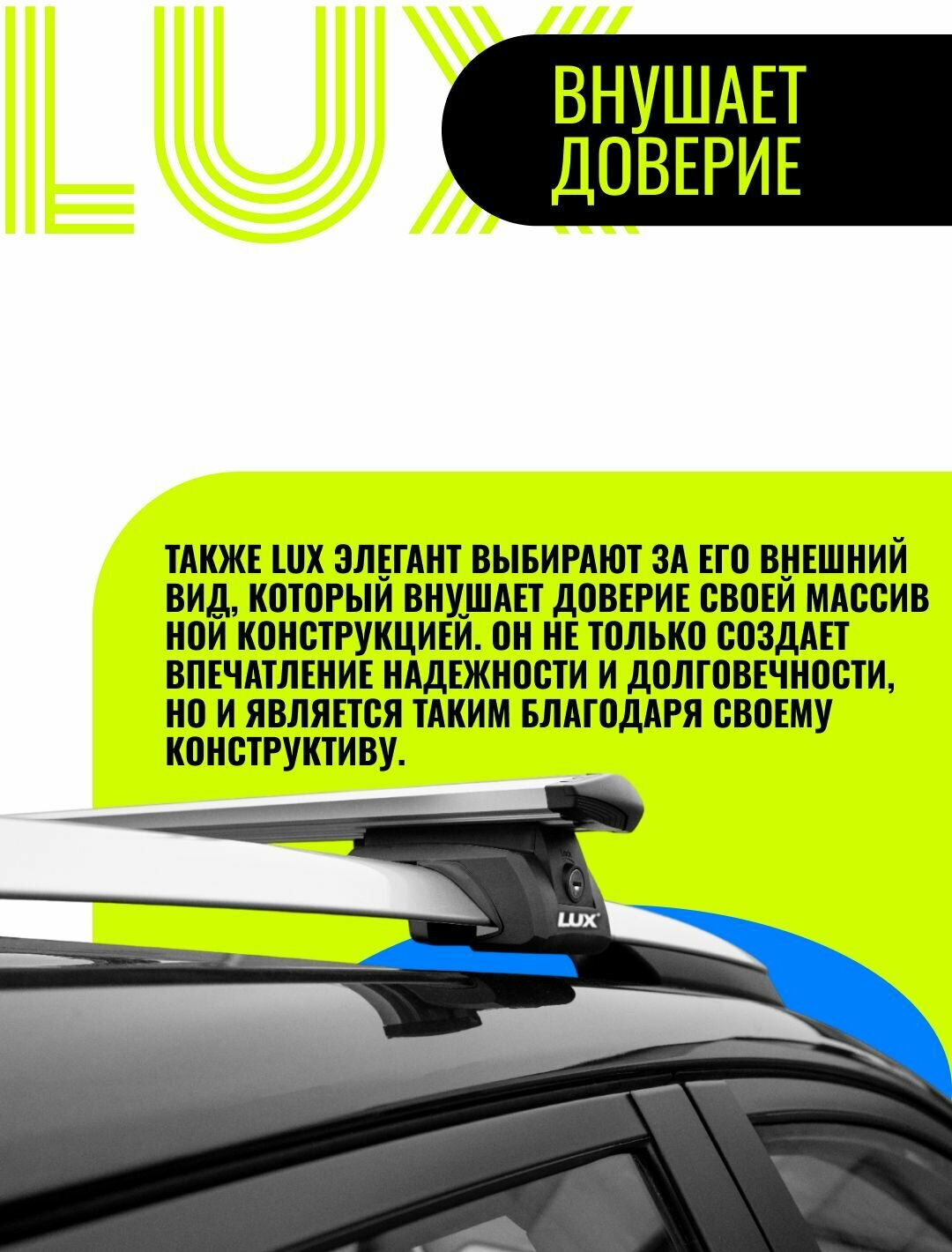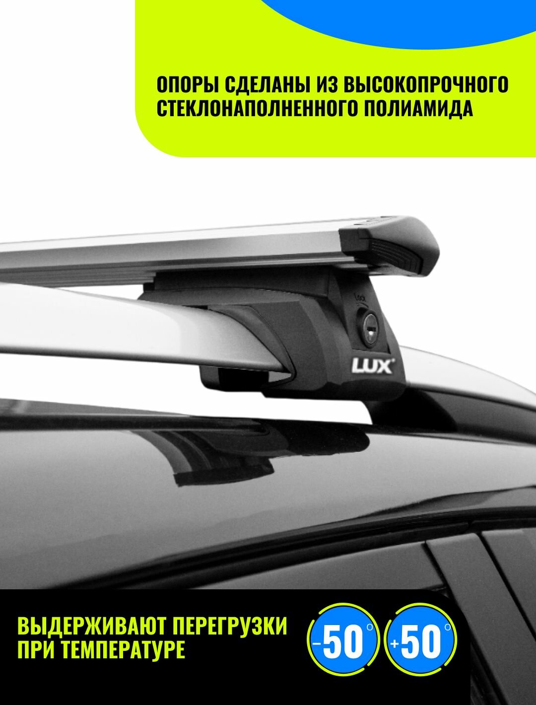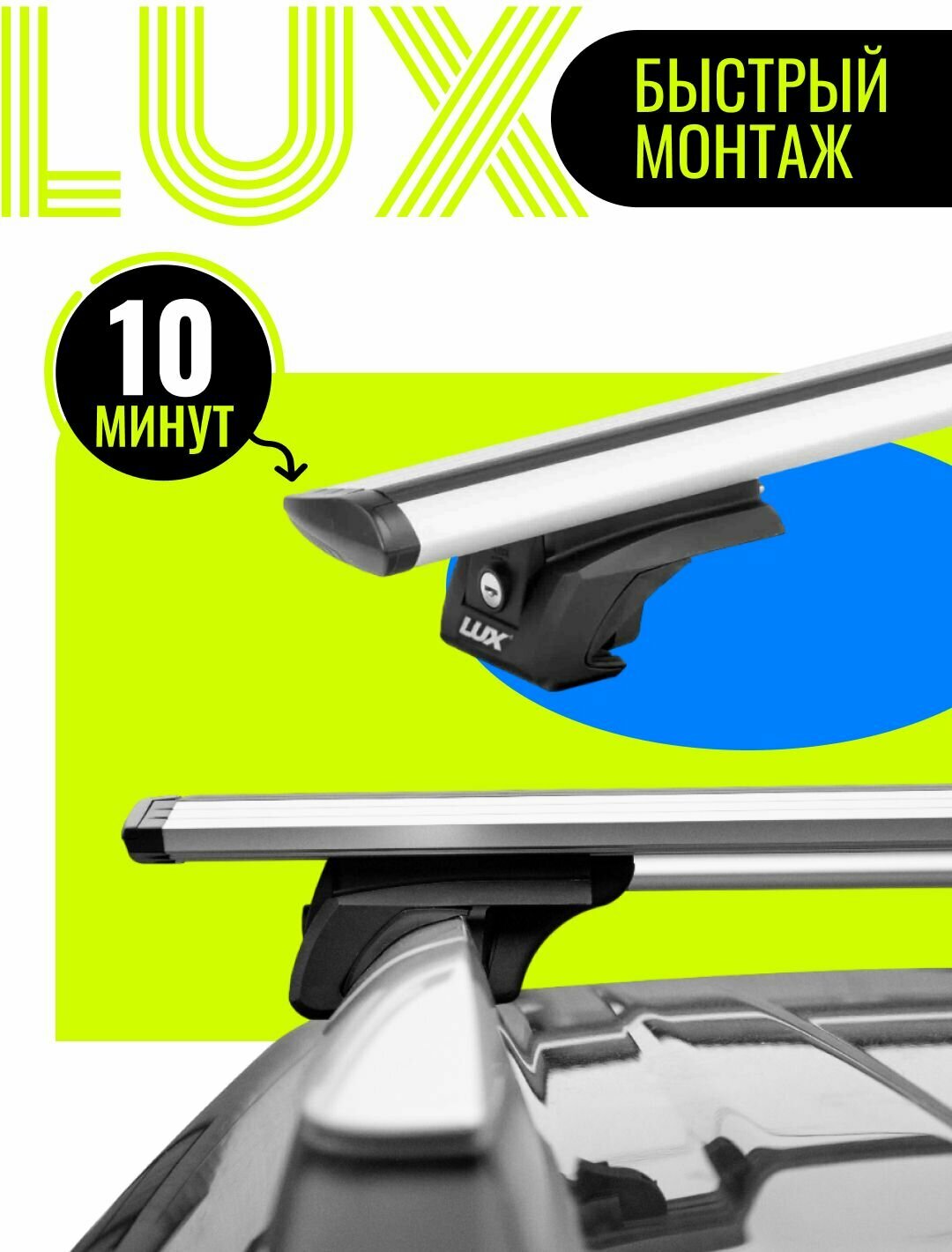 Багажник LUX элегант на крышу для Fiat Stilo / Фиат Стило универсал 2002-2010 на классические рейлинги - 120см крыловидные серебристые дуги + замок интересное: