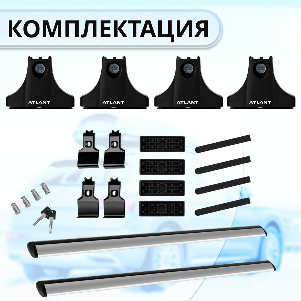 Багажник Атлант на гладкую крышу HONDA Jazz I хэтчбек 2001-2008, поперечины эконом типа аэро, 50 кг, 126 см , с замком