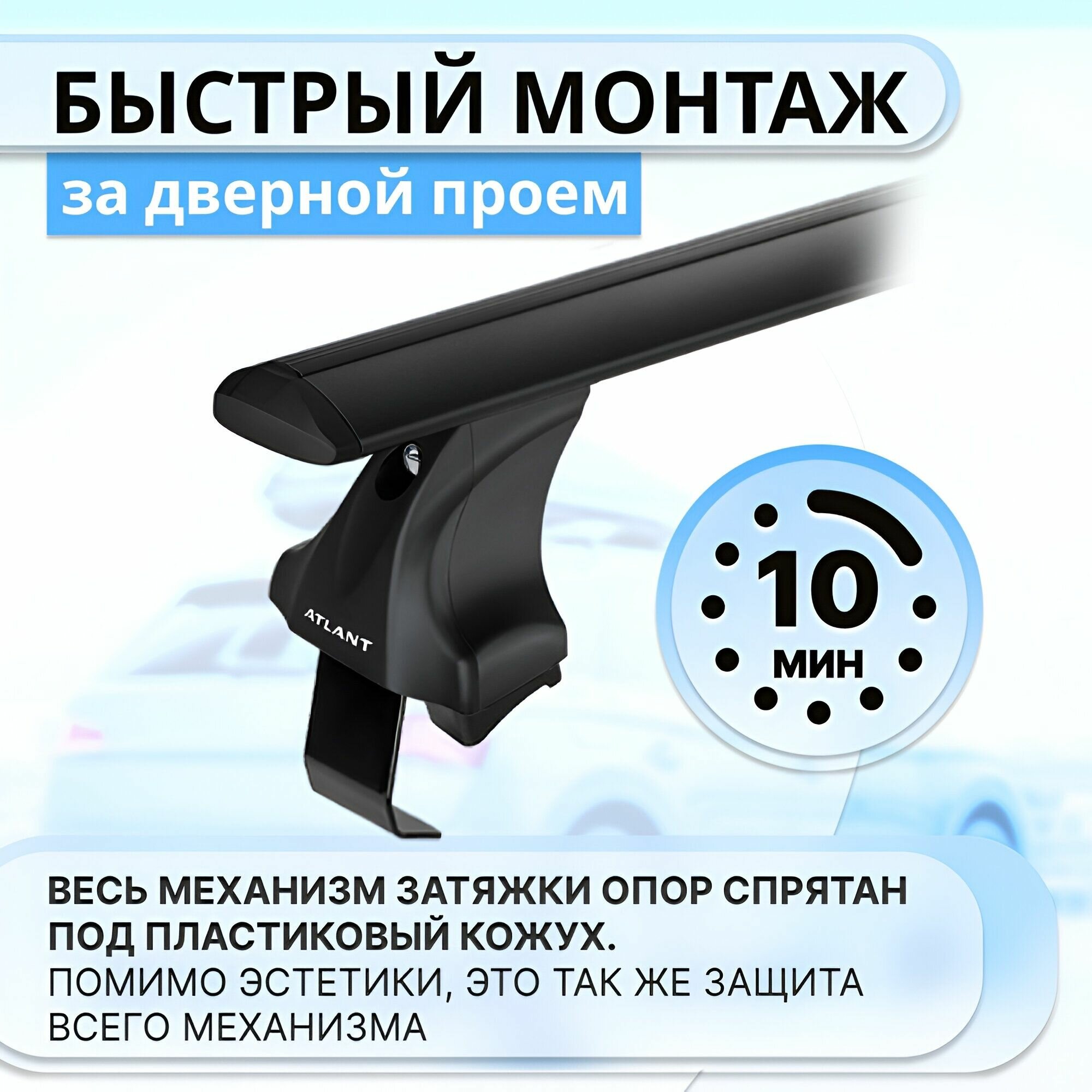 СохранитьБагажник Атлант за дверной проем VOLKSWAGEN Polo 4-дв. седан 2010-2019, черные поперечины типа крыло, 75 кг, 126 см, с замком интересное: