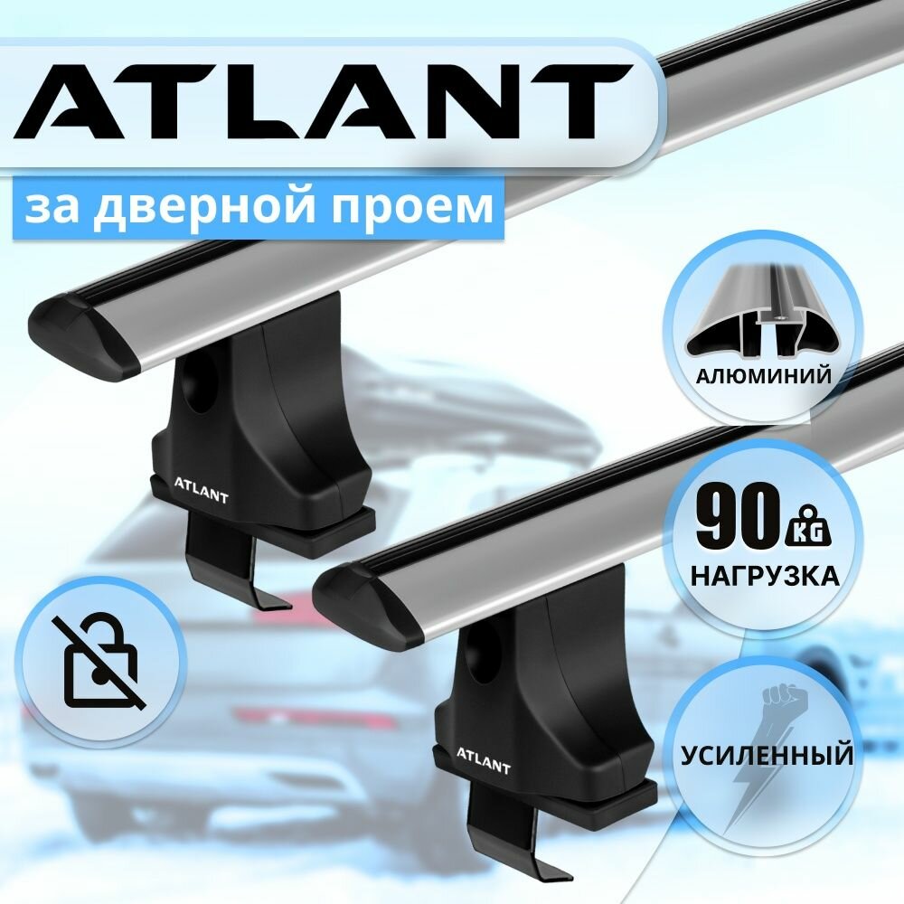 Багажник Атлант на гладкую крышу PEUGEOT Partner M 49 1997-2007, поперечины усиленные типа крыло, 90 кг, 110 см , с замком