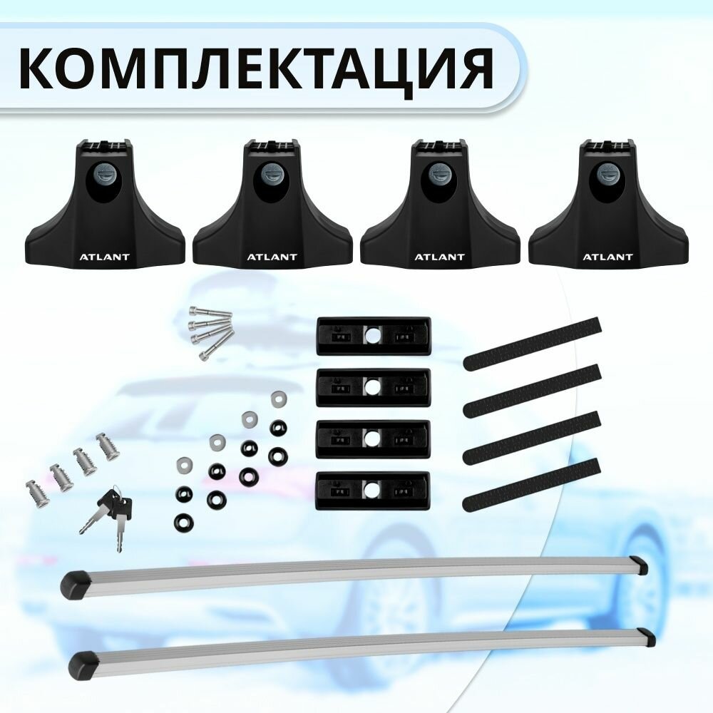 Купить Багажник Атлант в штатные места FIAT Doblo 5-дв минивэн, 00-10, дуги алюминиевые прямоугольные, 126 см , с замком