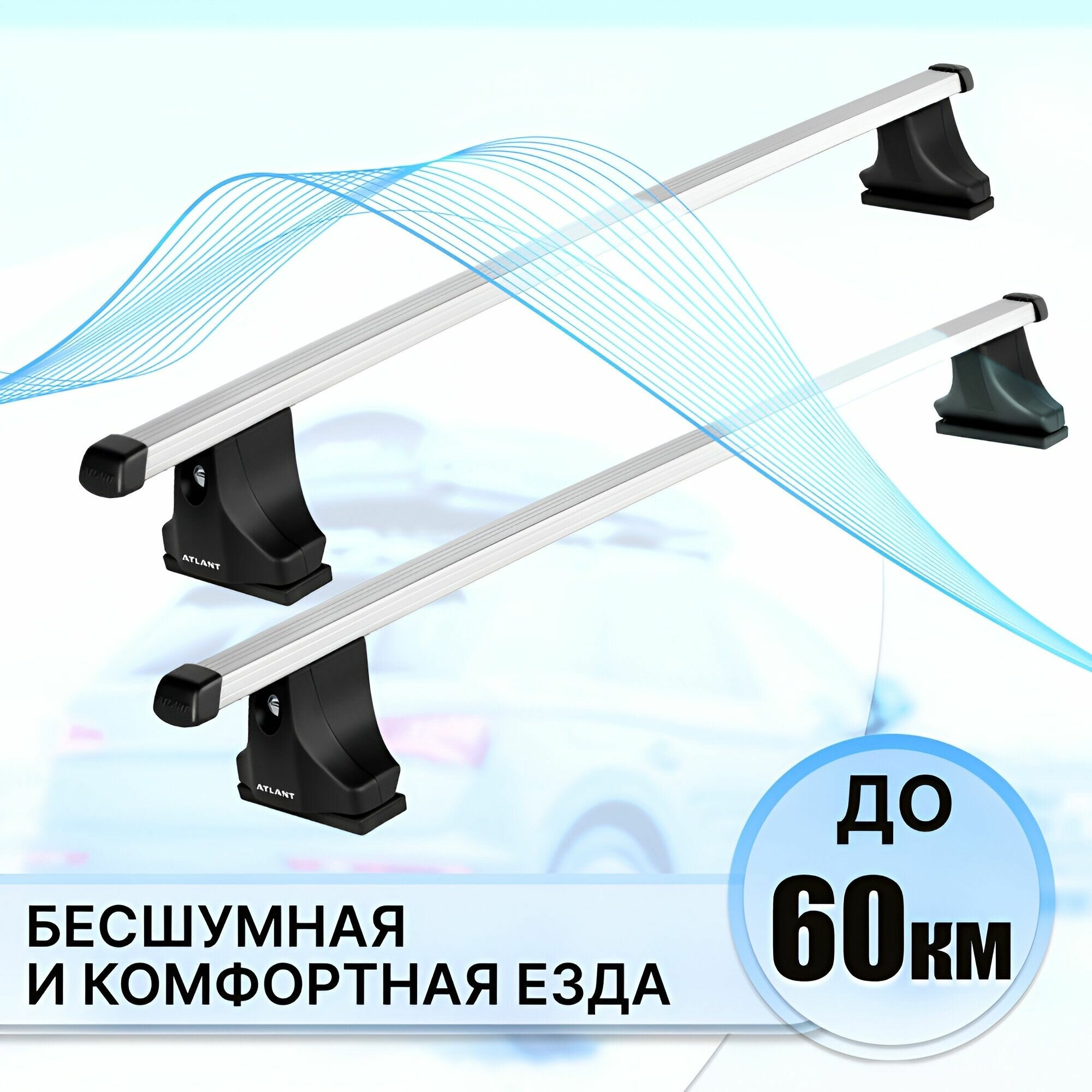 Багажник Атлант в штатные места FIAT Doblo 5-дв минивэн, 00-10, поперечины усиленные типа аэро, 90 кг, 126 см , с замком