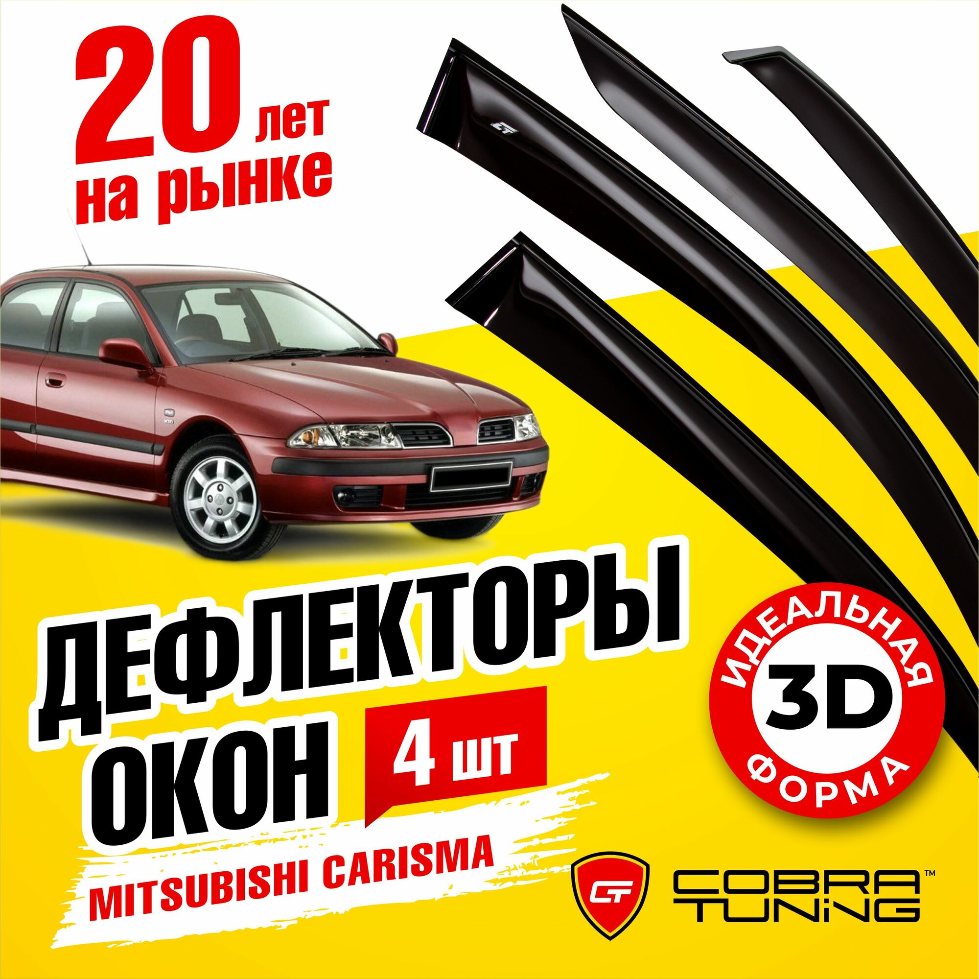Купить Дефлекторы боковых окон для Mitsubishi Carisma (Митсубиси Каризма) седан 1995-2004, ветровики на двери автомобиля, Cobra Tuning