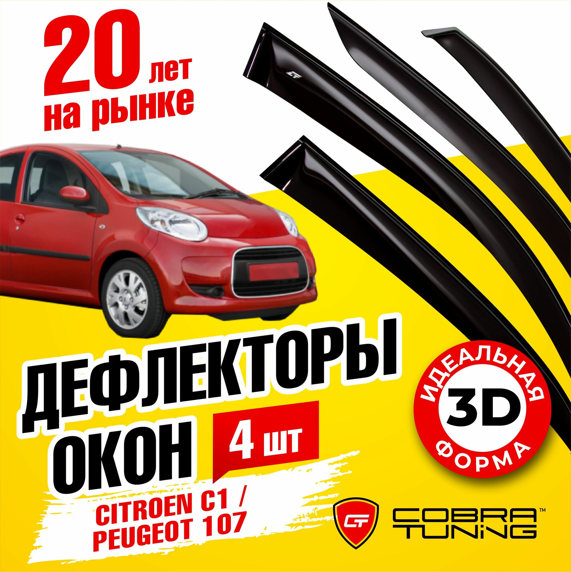 Купить Дефлекторы боковых окон для Citroen C1 (Ситроен), Peugeot 107 (Пежо), хэтчбек 2005-2014, ветровики на двери автомобиля, Cobra Tuning