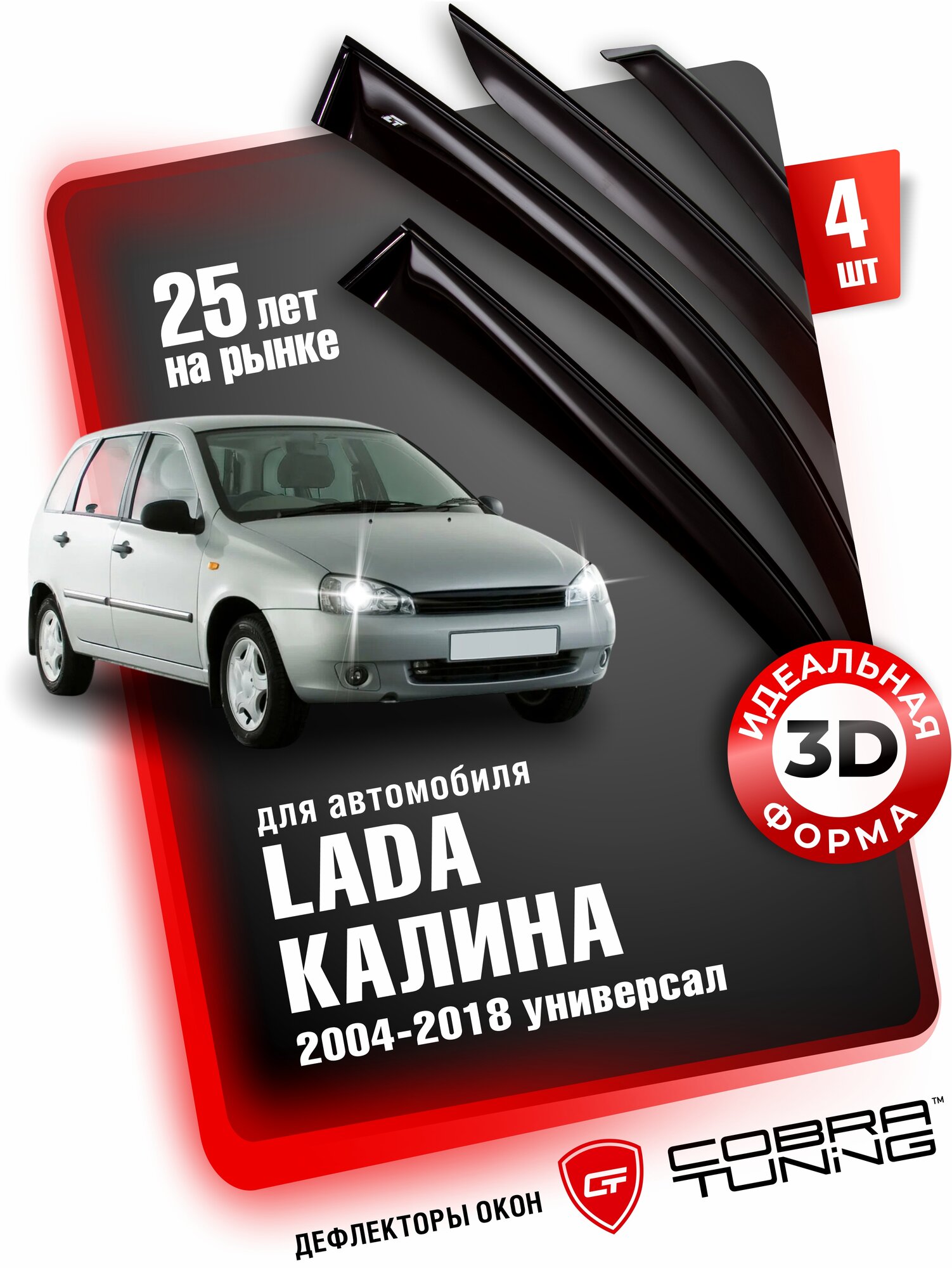 Купить Дефлекторы боковых окон для Лада Калина (Lada Kalina) 2004-2018 универсал, ветровики на двери автомобиля, Cobra Tuning