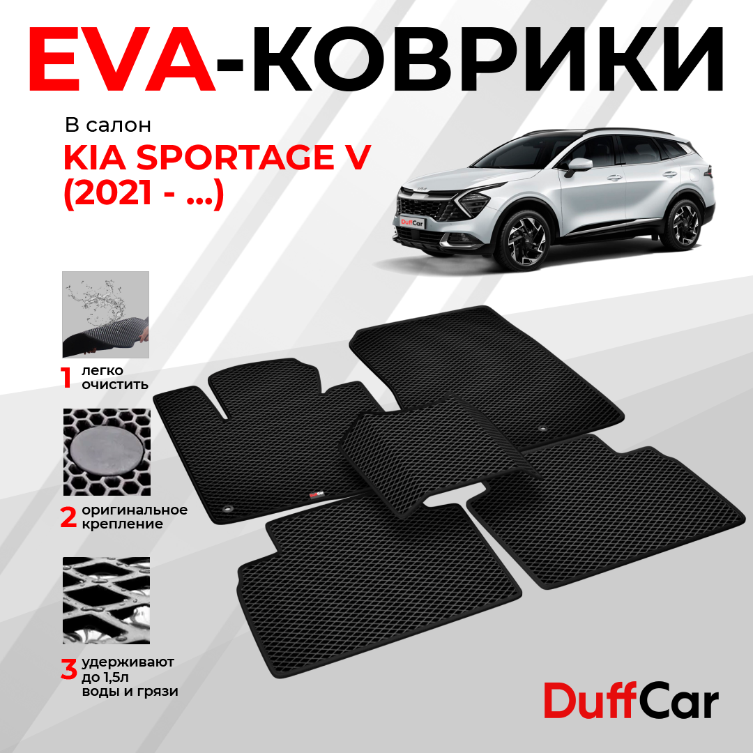 Купить EVA коврики в салон Kia Sportage V (2021 - .) / Киа Спортедж 5 / черный ромб с черным кантом / eva коврики от DuffCar