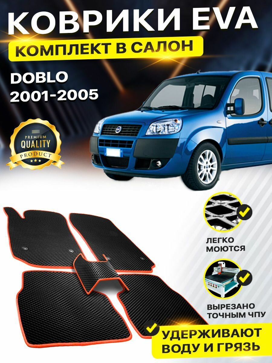 Коврики в салон автомобиля Fiat Doblo фиат добло 2001-2005 EVA ЕВА ЭВА ромб черныйоранжевый интересное: