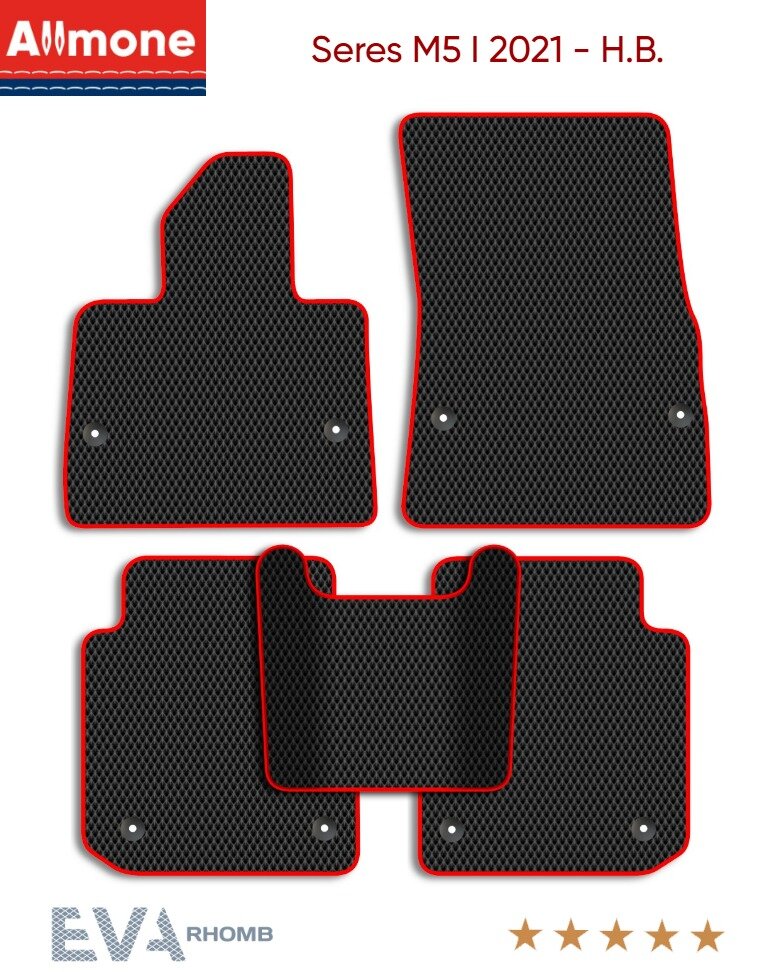 Коврики автомобильные в салон ЭВА Allmone для Seres M5 1 (suv) 2021 - Н. В, черные c красным кантом, 5шт. / Серес М5 1 интересное: