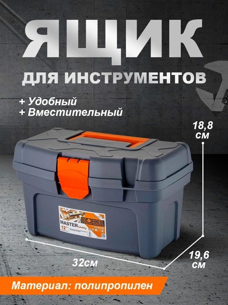Ящик для хранения инструментов Blocker / Блокер Master Economy 12 пластиковый, размер 32х19.5х19см / хранение вещей