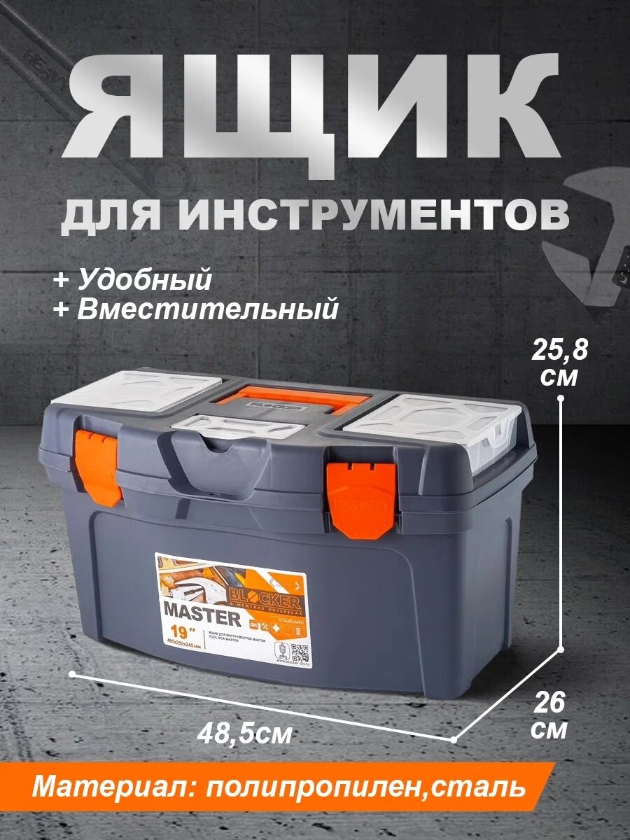Ящик для инструментов BLOCKER Master 19 серо-свинцовый/оранжевый со съёмными органайзерами 485х260х258