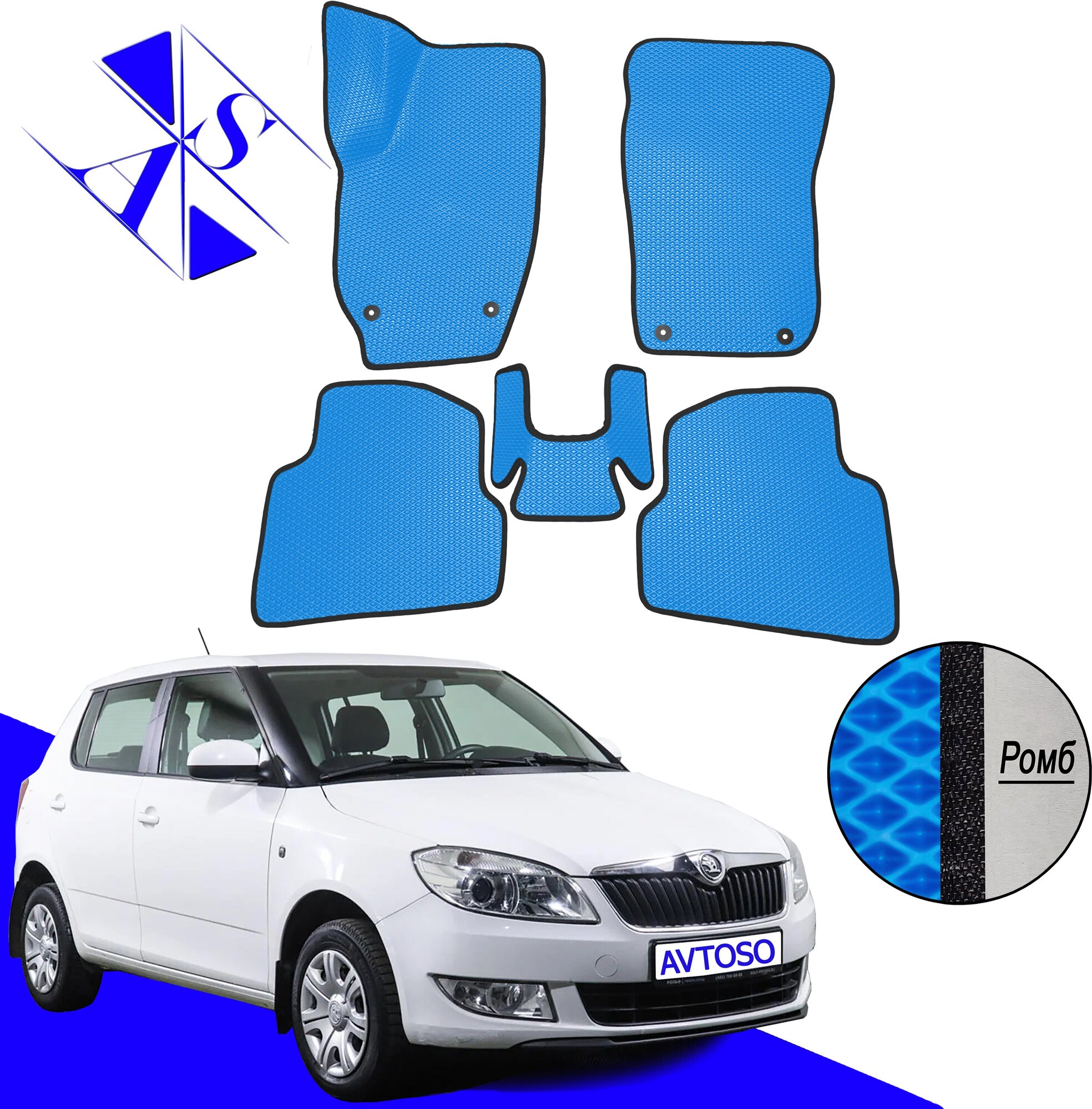 Автомобильные коврики EVA/ЕВА/ЭВА для Skoda Fabia 2 (MK2) Шкода Фабия МК2 2007-2014 черный голубой
