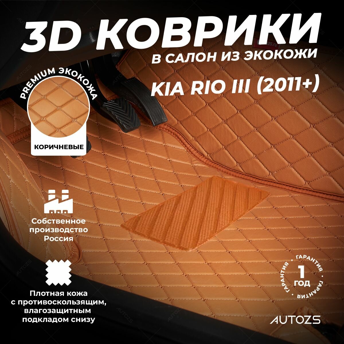 СохранитьКожаные 3D коврики в салон с бортами для Kia Rio III (2011+) коричневые / Киа Рио 3 (2011+) интересное: