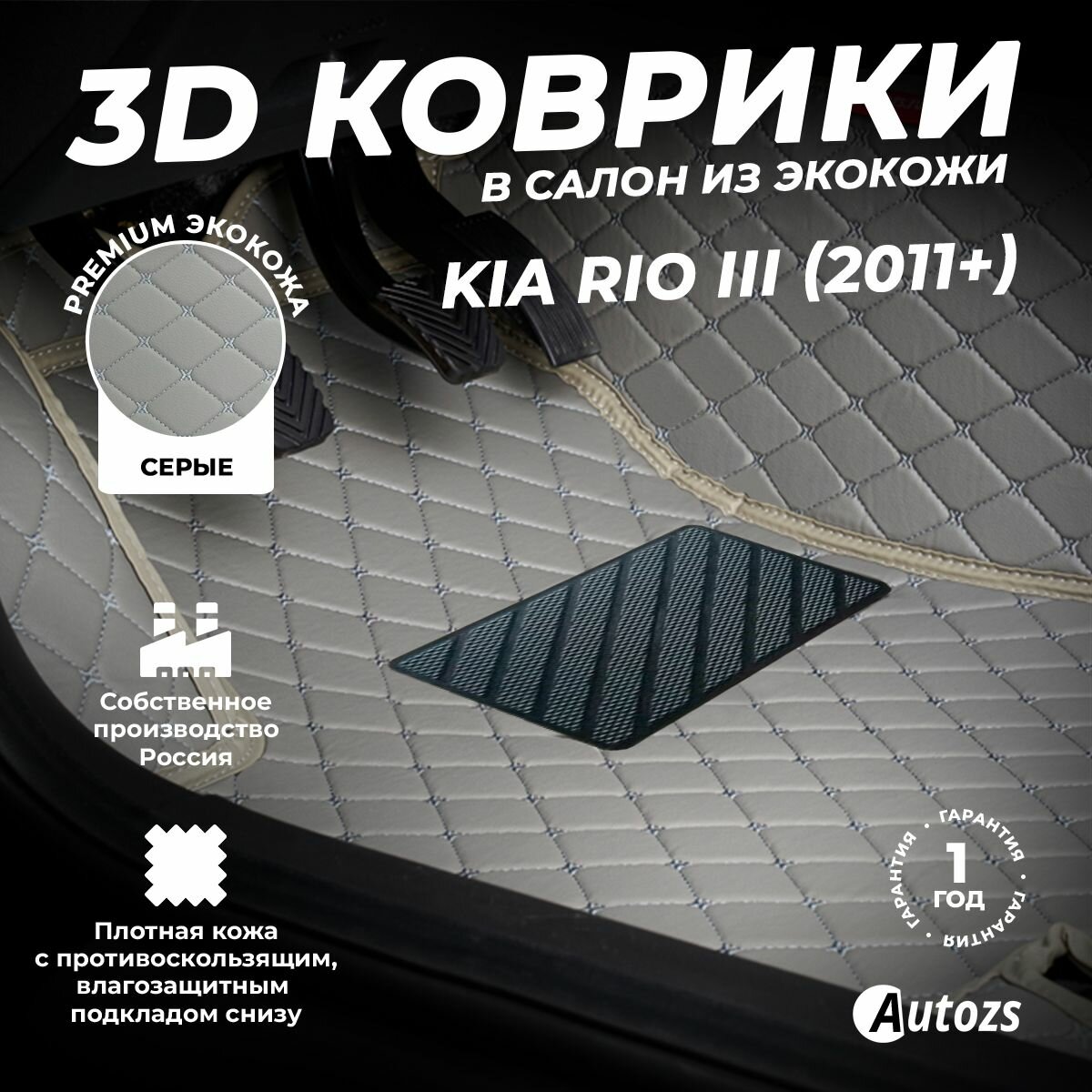 СохранитьКожаные 3D коврики в салон с бортами для Kia Rio III (2011+) серые / Киа Рио 3 (2011+) интересное: