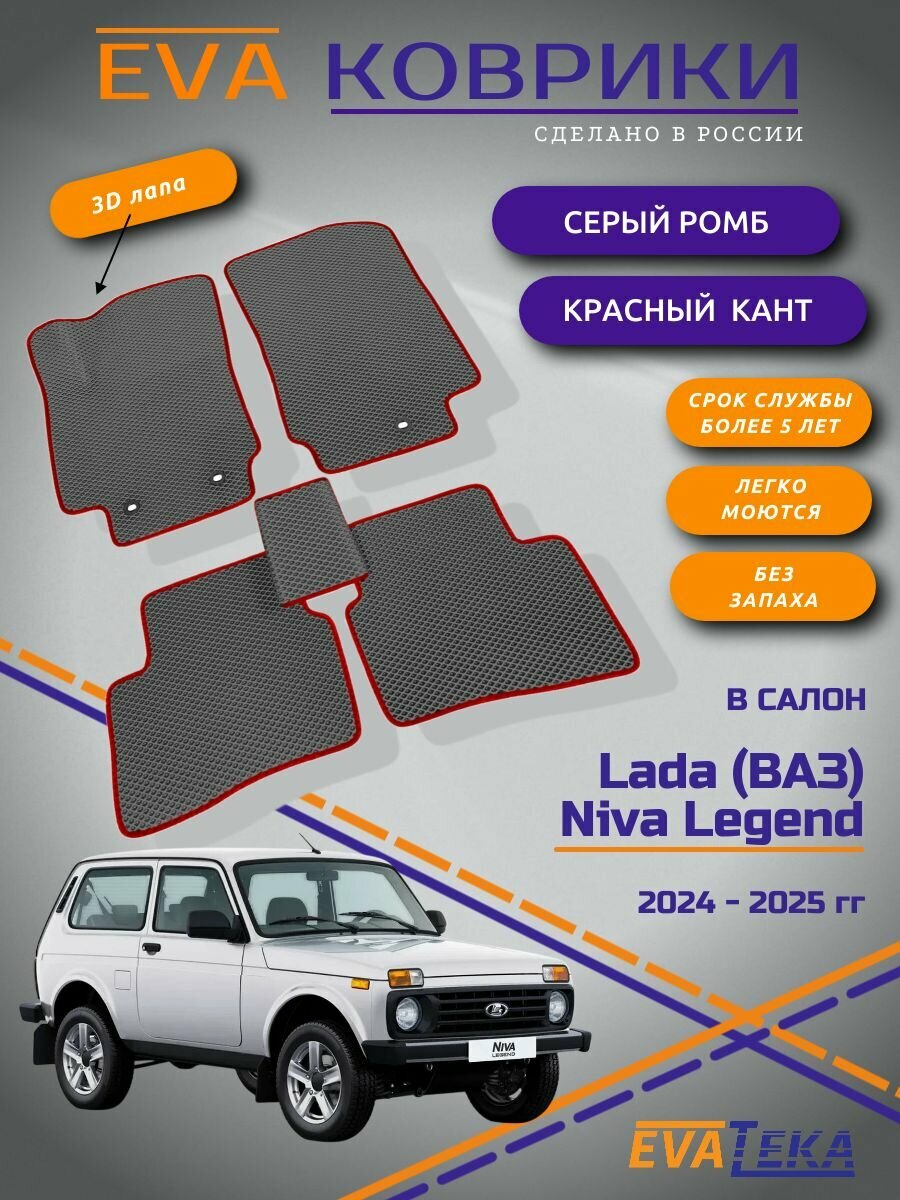 Купить EVA коврики для Niva Legend, Нива Легенд, 3-х дв, 2023-2025 г. в, с 3Д лапой, износостойкие, серый ромб с красным кантом
