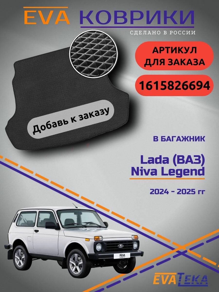 Купить EVA коврики для Niva Legend, Нива Легенд, 3-х дв, 2023-2025 г. в, с 3Д лапой, износостойкие, серый ромб с темно серым кантом