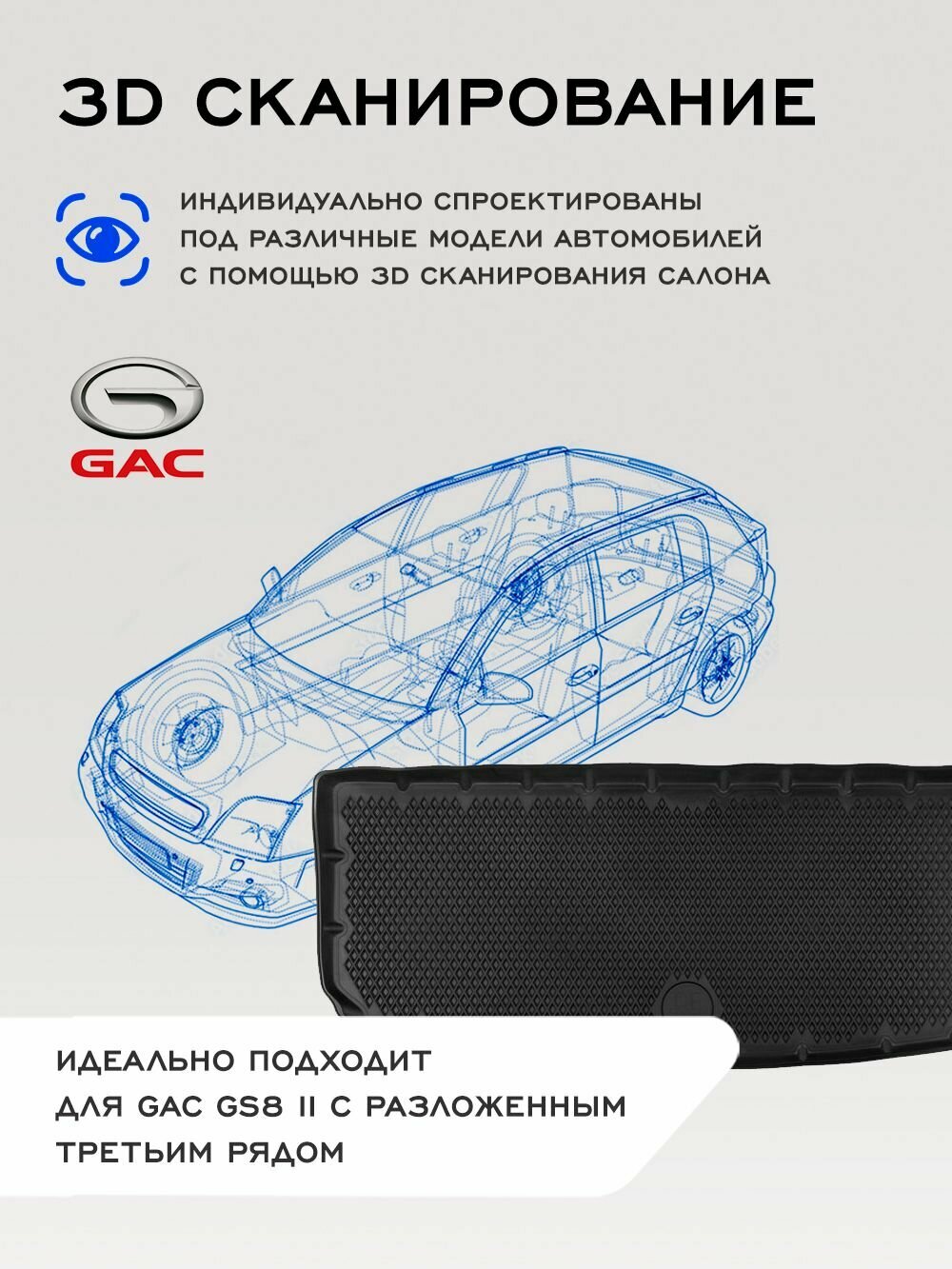 Коврик в багажник GAC GS8 II (2021-) с разложенным третьим рядом EVA 3D Premium
