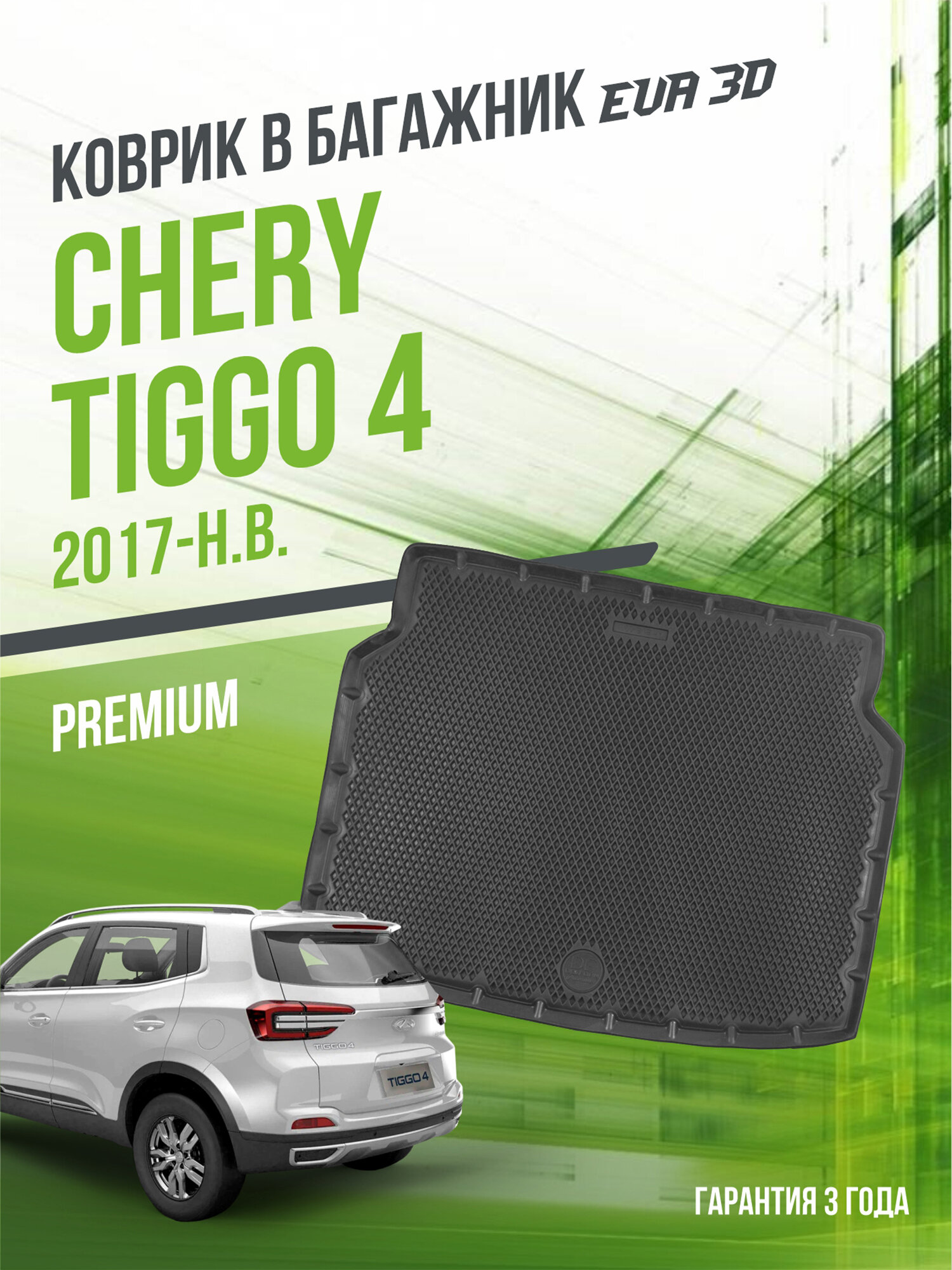 Купить Коврик в багажник Chery Tiggo 4 (2017-н. в.) / EVA 3D коврик в Чери Тигго с сотами и бортами Delform