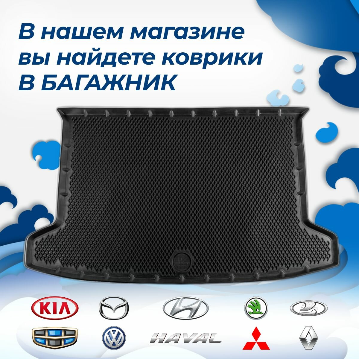 Коврик в багажник Kia Rio II (2005-2011) "Хэтчбек" / EVA 3D коврик в Киа Рио 2 с сотами и бортами Delform