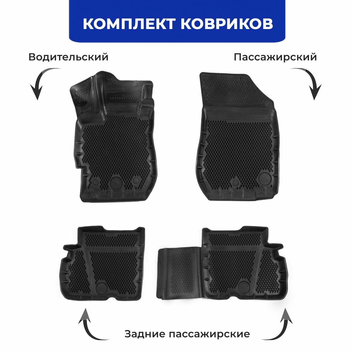 Коврики для автомобиля Lada Largus из 4-х (2012-н. в.) / полный набор в салон для автомобиля Лада Ларгус с бортами и ячейками ЭВА 3Д / версия "Standart EVA 3D" Delform