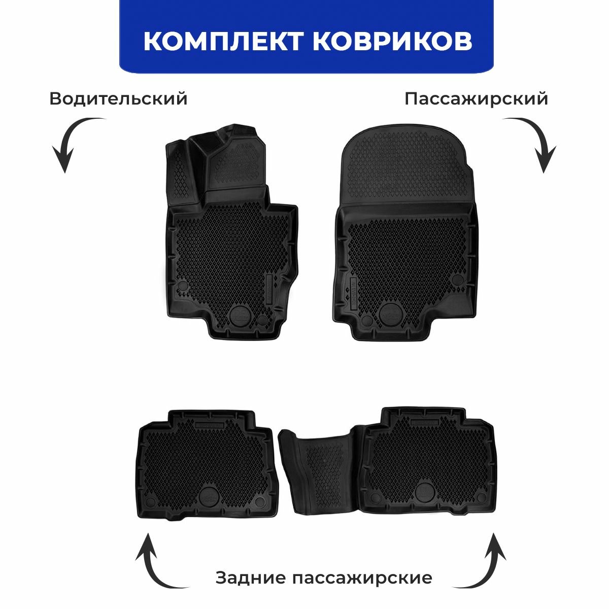 Коврики для автомобиля Lada Largus из 4-х (2012-н. в.) / полный набор в салон для автомобиля Лада Ларгус с бортами и ячейками ЭВА 3Д / версия "Standart EVA 3D" Delform