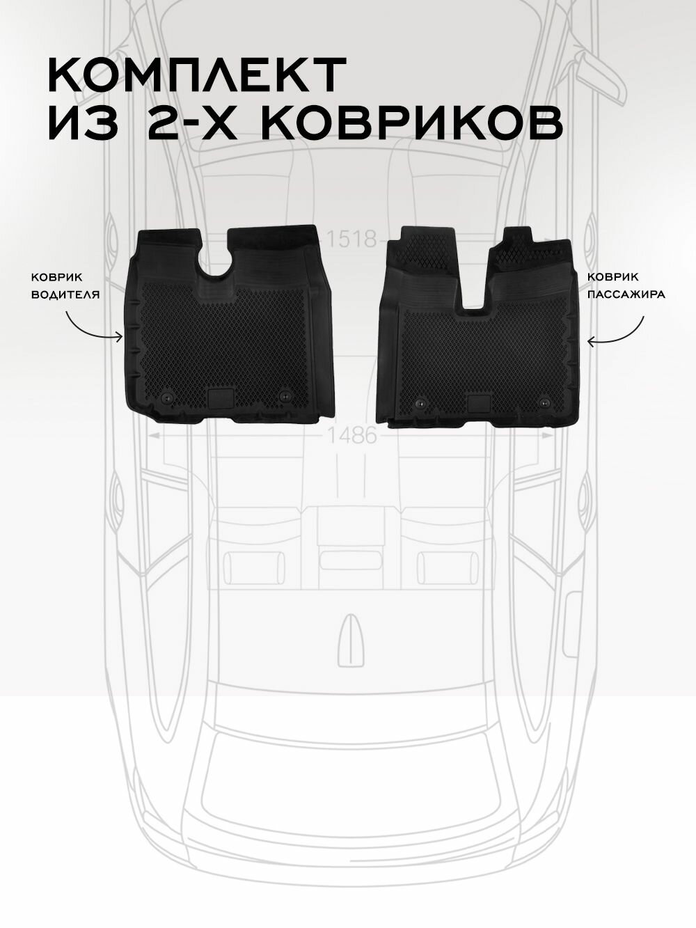 Коврики для автомобиля ГАЗель "Бизнес" из 2-х (1994-н. в.) / полный набор в салон для автомобиля GAZelle с бортами и ячейками ЭВА 3Д / версия "Standart EVA 3D" Delform