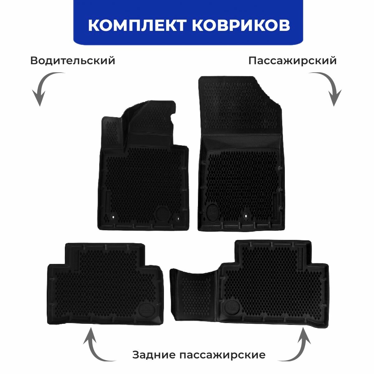 Коврики для автомобиля Lada Largus из 4-х (2012-н. в.) / полный набор в салон для автомобиля Лада Ларгус с бортами и ячейками ЭВА 3Д / версия "Standart EVA 3D" Delform