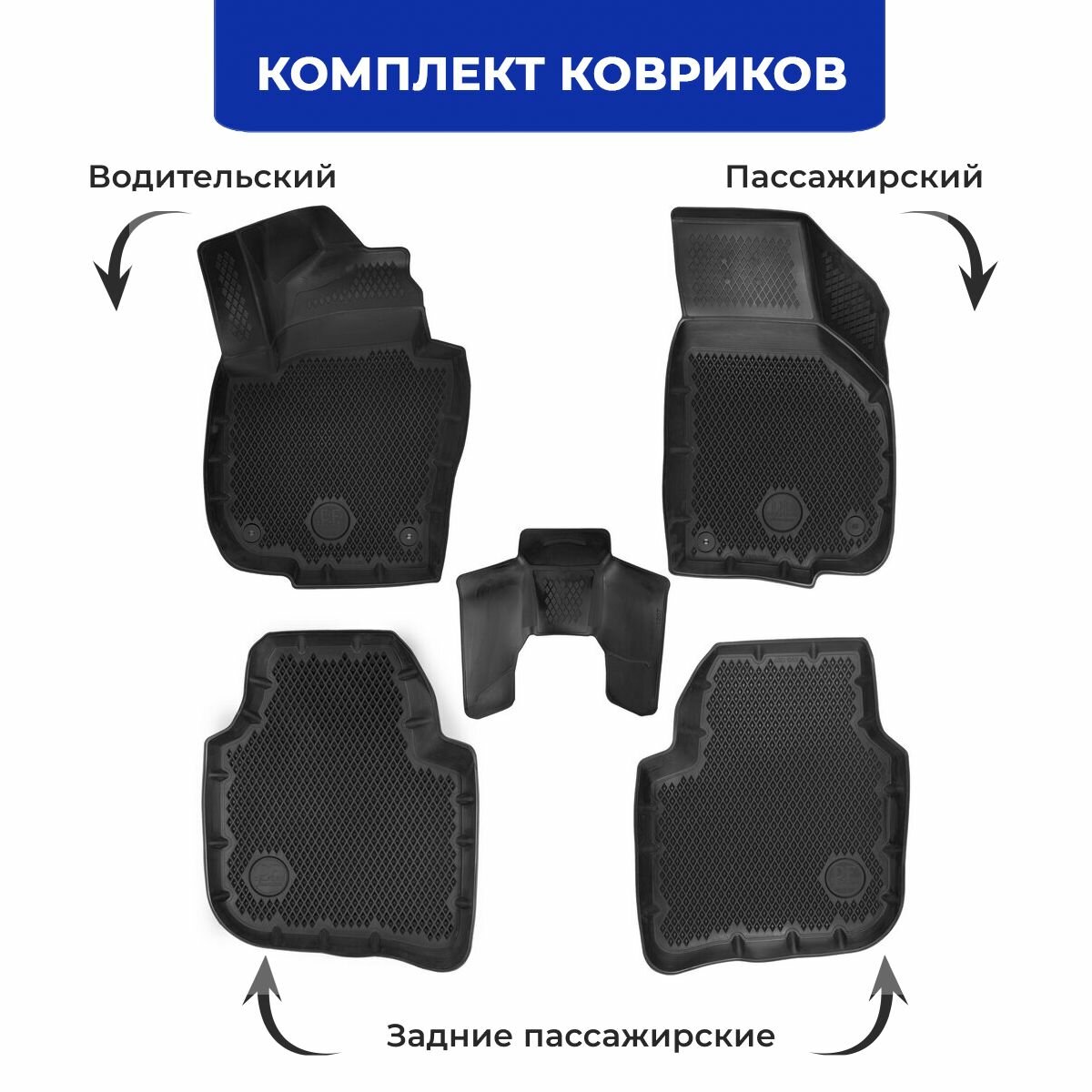 Коврики для автомобиля Lada Largus из 4-х (2012-н. в.) / полный набор в салон для автомобиля Лада Ларгус с бортами и ячейками ЭВА 3Д / версия "Standart EVA 3D" Delform