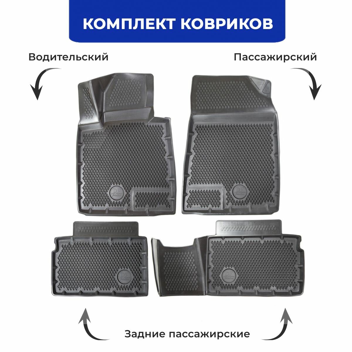 Коврики для автомобиля Lada Largus из 4-х (2012-н. в.) / полный набор в салон для автомобиля Лада Ларгус с бортами и ячейками ЭВА 3Д / версия "Standart EVA 3D" Delform
