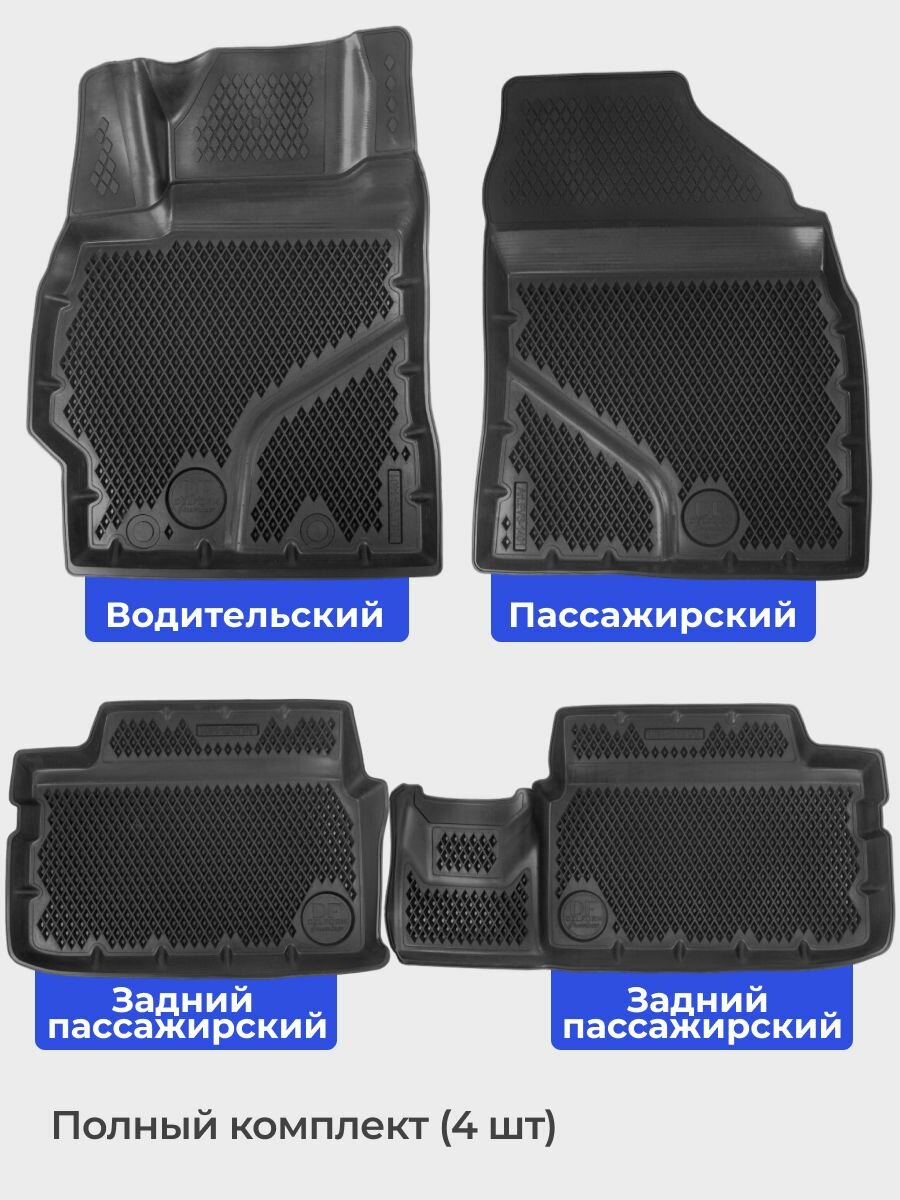 Коврики для автомобиля Lada Largus из 4-х (2012-н. в.) / полный набор в салон для автомобиля Лада Ларгус с бортами и ячейками ЭВА 3Д / версия "Standart EVA 3D" Delform