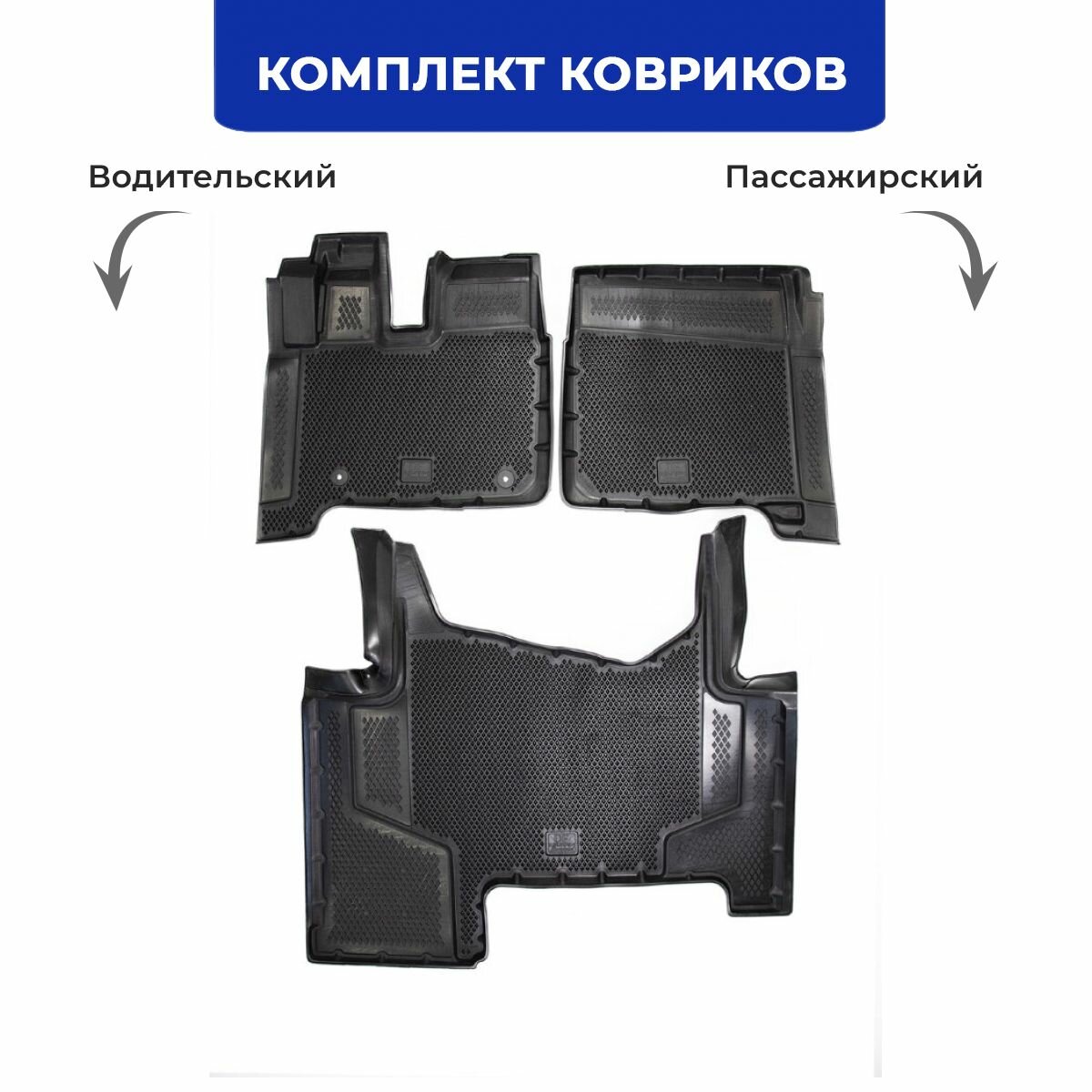 Коврики для автомобиля ГАЗель "Бизнес" из 2-х (1994-н. в.) / полный набор в салон для автомобиля GAZelle с бортами и ячейками ЭВА 3Д / версия "Standart EVA 3D" Delform