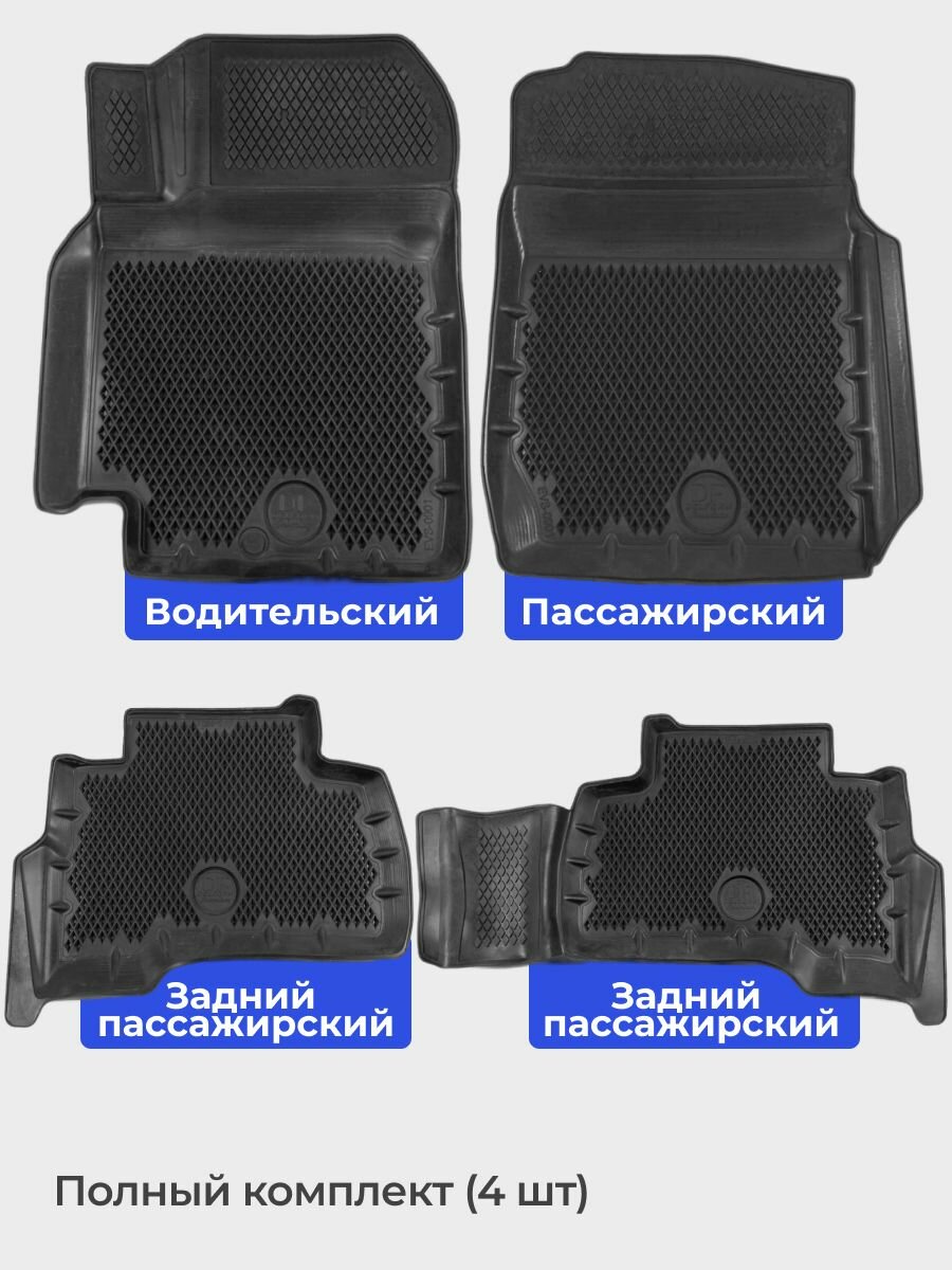Коврики для автомобиля Lada Largus из 4-х (2012-н. в.) / полный набор в салон для автомобиля Лада Ларгус с бортами и ячейками ЭВА 3Д / версия "Standart EVA 3D" Delform
