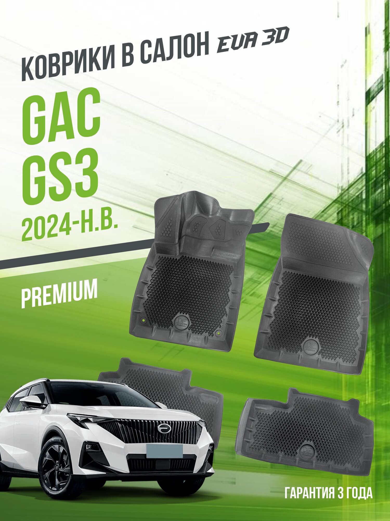 Коврики в машину GAC GS3 (2024-н. в.) / полный набор в салон ГАК ГС3 с бортами и ячейками ЭВА 3Д / версия "Premium EVA 3D" Delform интересное: