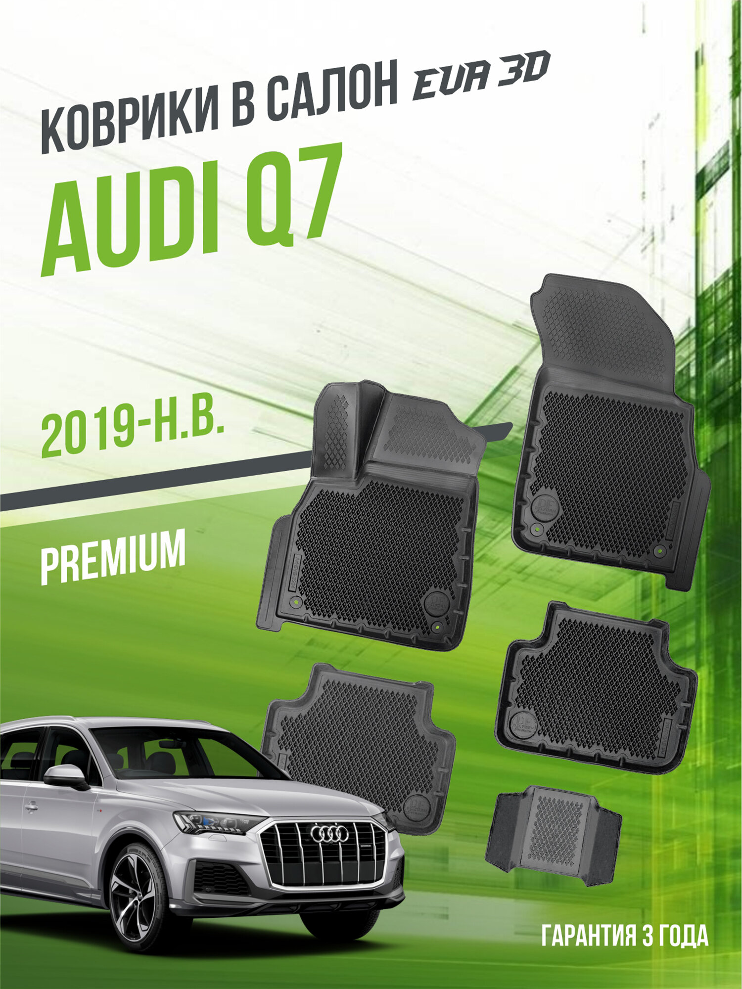 Купить Коврики в машину Audi Q7 (2019-н. в.) / полный набор в салон Ауди Ку7 с бортами и ячейками ЭВА 3Д / версия "Premium EVA 3D" Delform
