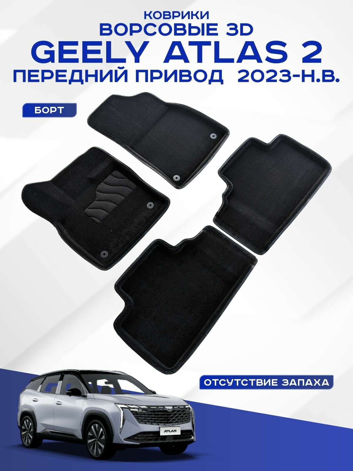 Купить Автомобильные коврики 3D ворс Geely Atlas 2 2WD , Джили Атлас 2 передний привод 2023-н. в. Seintex 317460