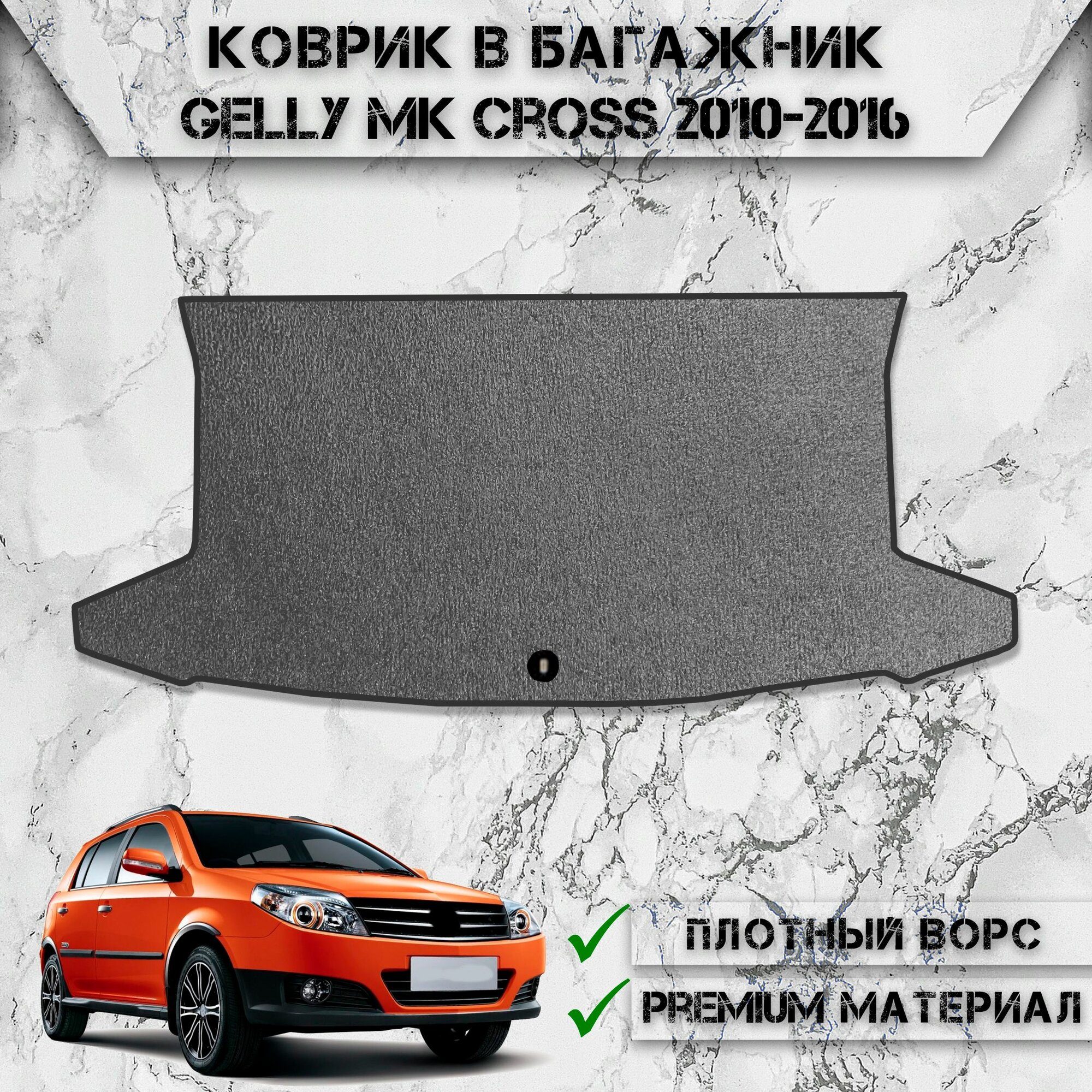 Купить Ворсовый коврик в багажник "Стандарт" для авто Джили / Gelly MK Cross 2010-2016 Г. В. Серый С Чёрным Кантом