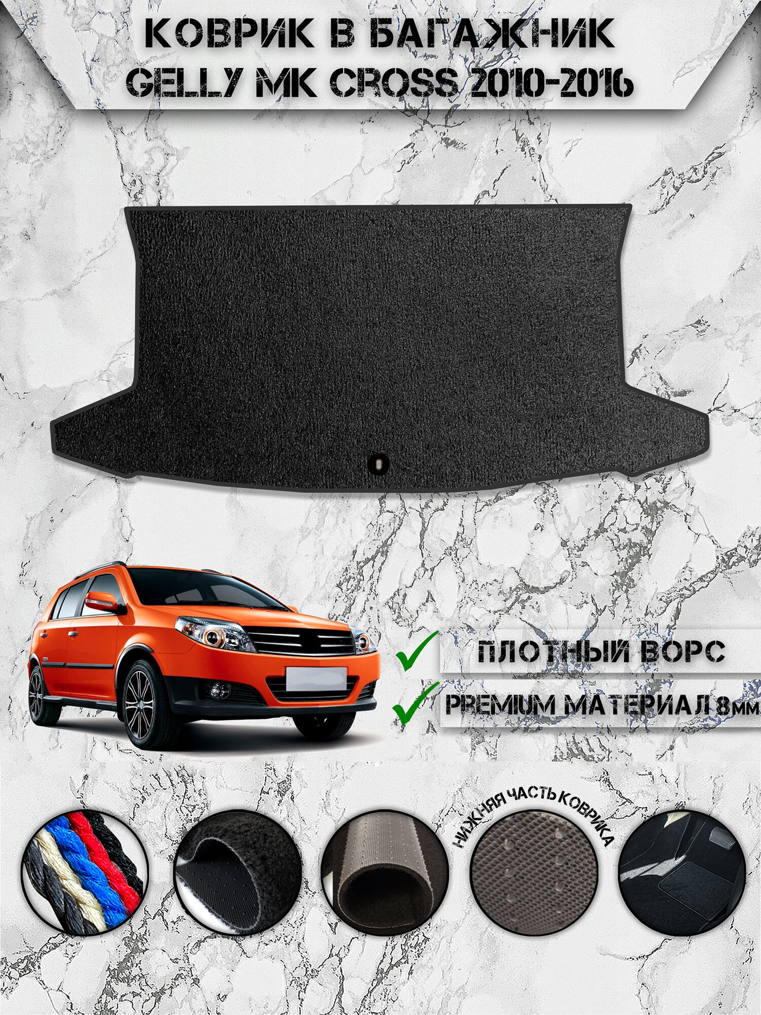 Купить Ворсовый коврик в багажник "Люкс" для авто Джили / Gelly MK Cross 2010-2016 Чёрный
