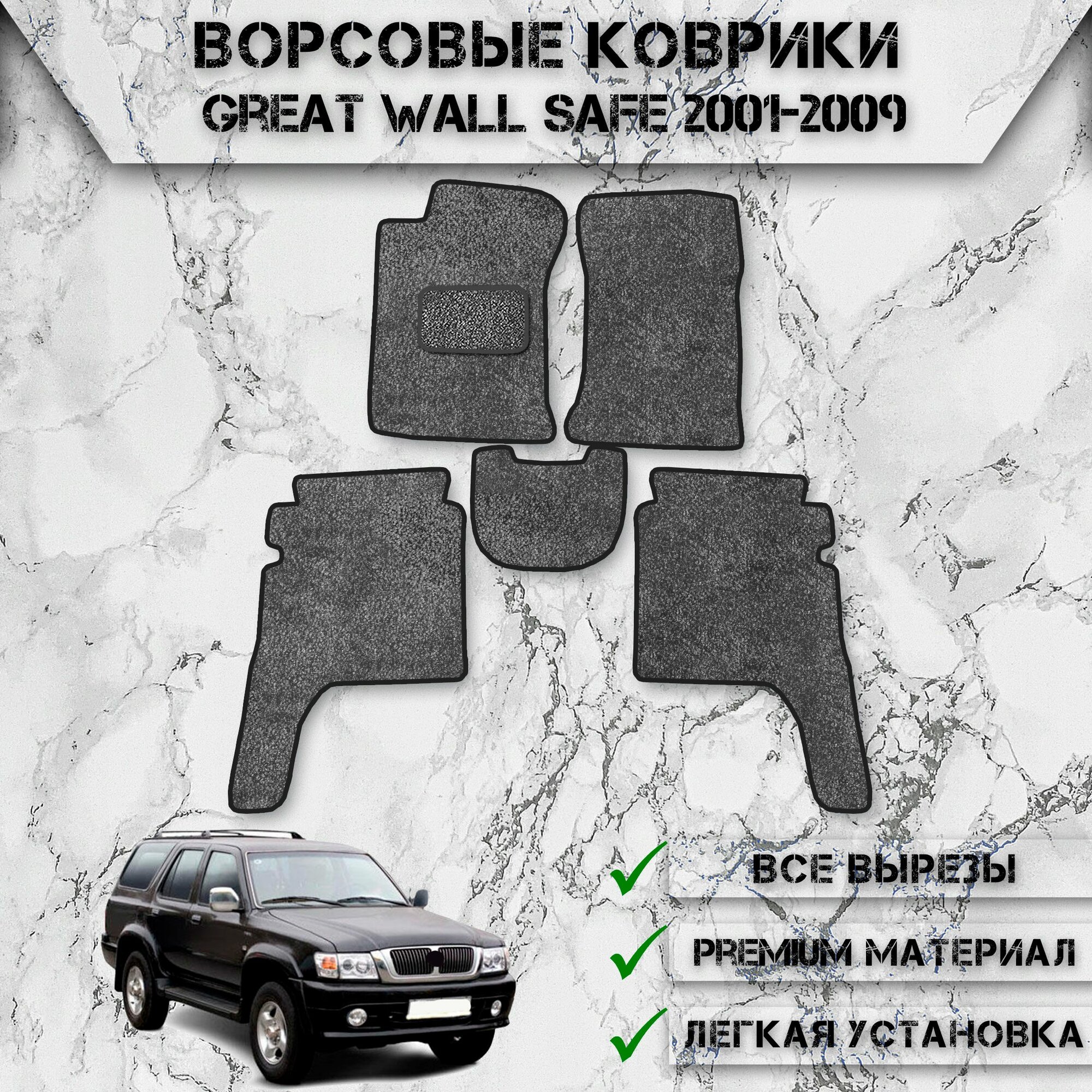 Ворсовые коврики "Стандарт" для авто Грит Волл Сейф / Great Wall Safe 2001-2009 Г. В. Чёрный С Чёрным Кантом