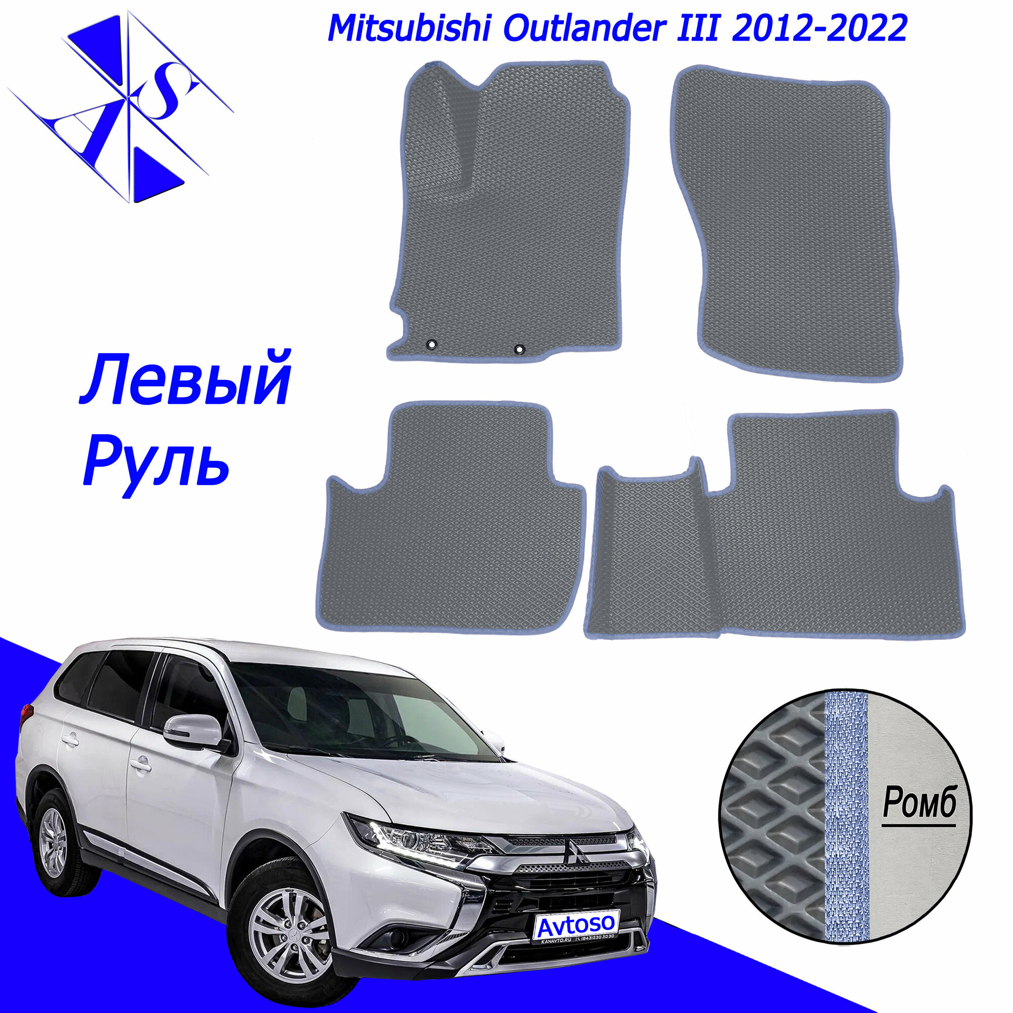 Купить Автомобильные коврики ЕВА/ЭВА/EVA для Mitsubishi Outlander 3 / Митсубиси Аутлендер 3 2012-2022 серый василек