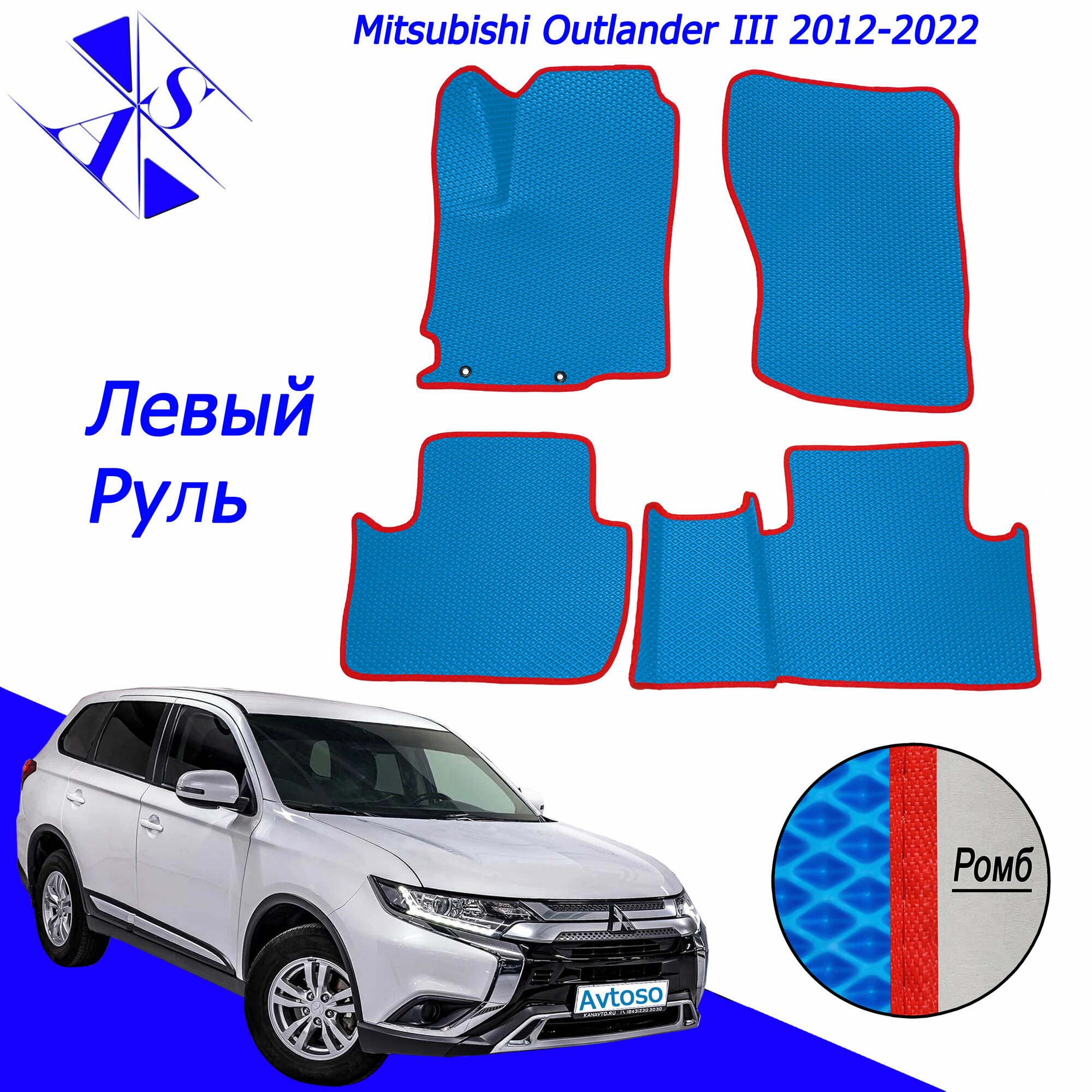 Купить Автомобильные коврики ЕВА/ЭВА/EVA для Mitsubishi Outlander 3 / Митсубиси Аутлендер 3 2012-2022 василек красный