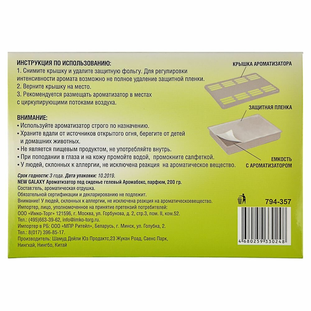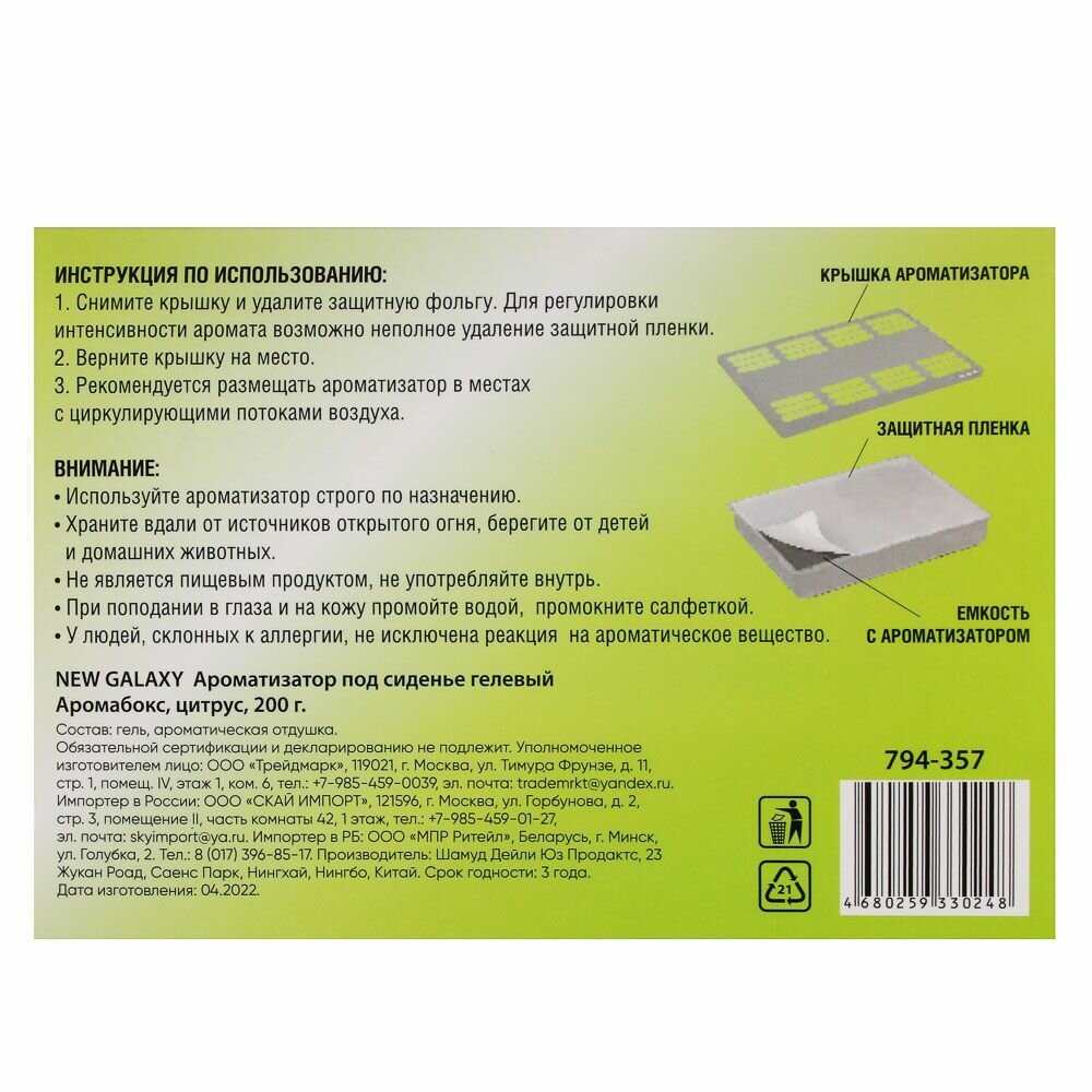 Ароматизатор в машину под сиденье NEW GALAXY Аромабокс, 200г, цитрус интересное: