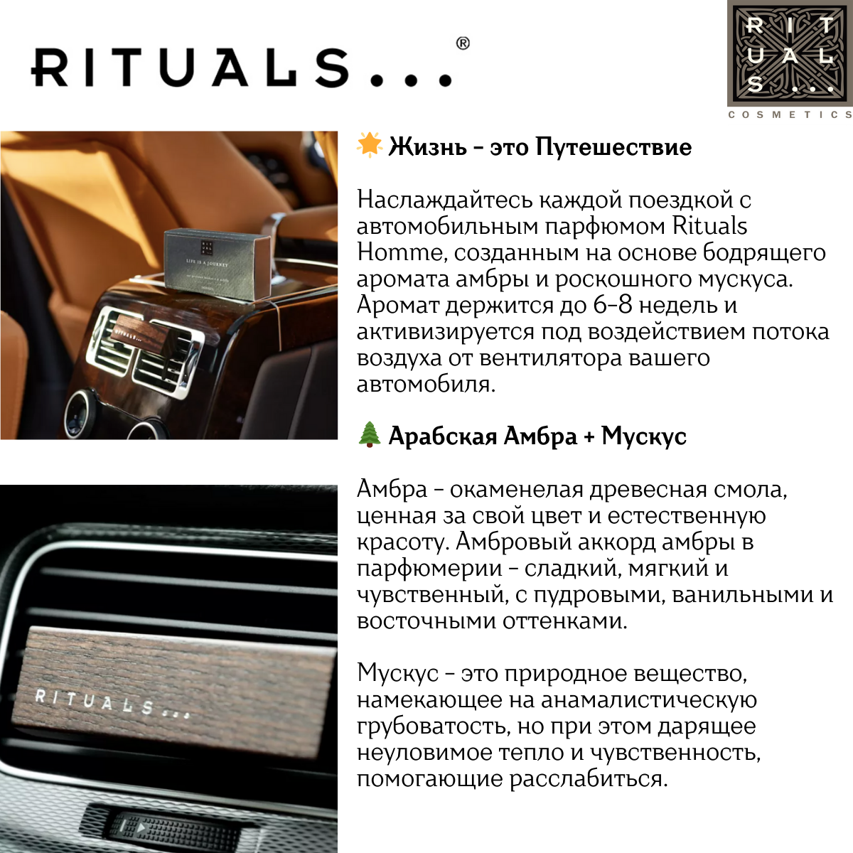 Купить Ароматизатор для автомобиля с 2 сменными блоками Rituals Homme с бодрящим ароматом амбры и роскошного мускуса